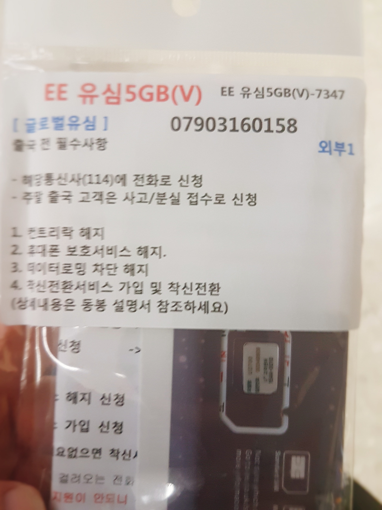 EE 유심 5GB를 사전에 예약하여 인천공항 제1터미널에서 찾아욌다.