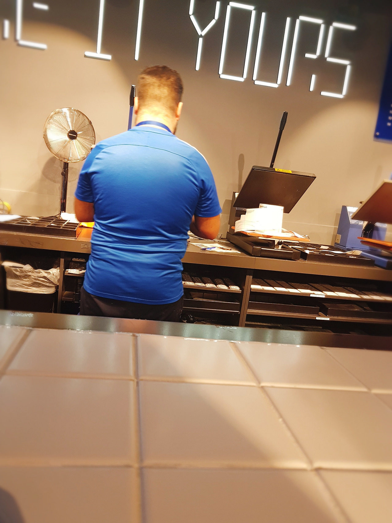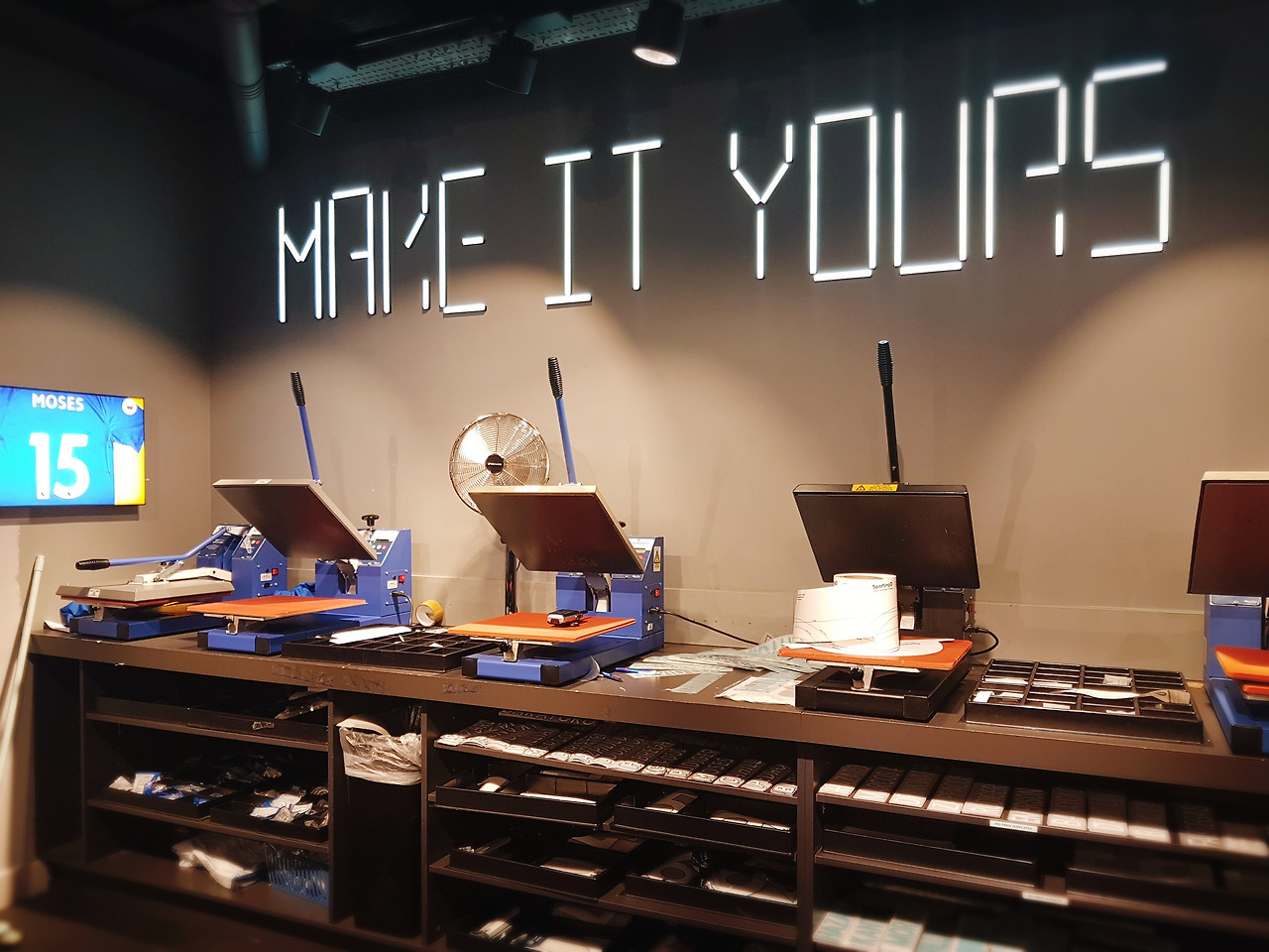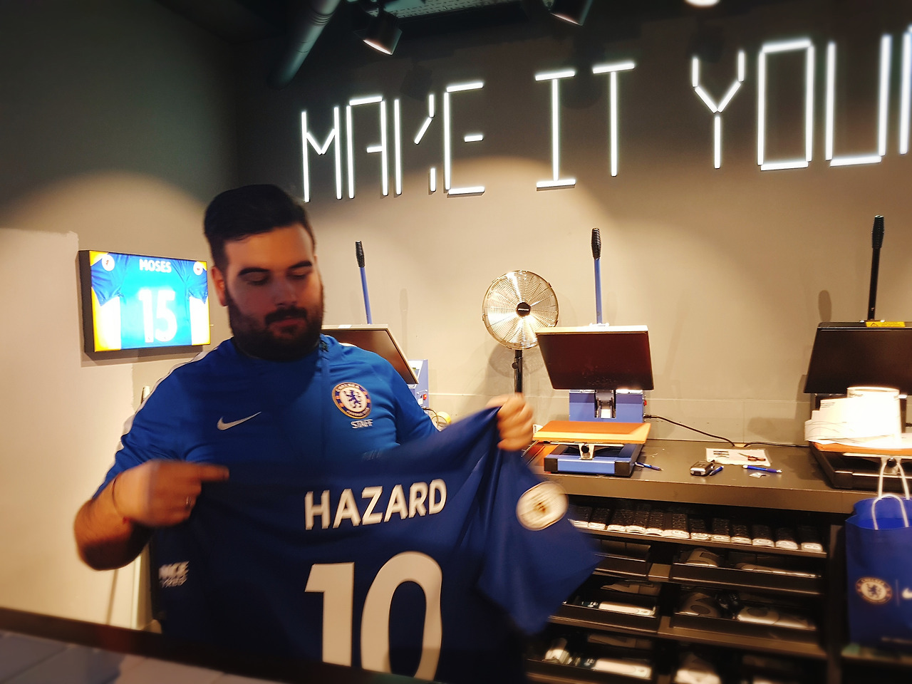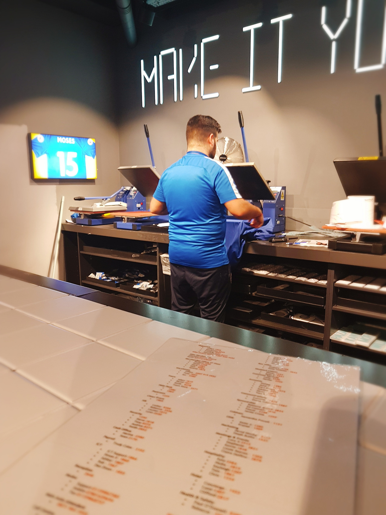 티셔츠를 들고오면 이름을 그 자리애게.새겨준다.