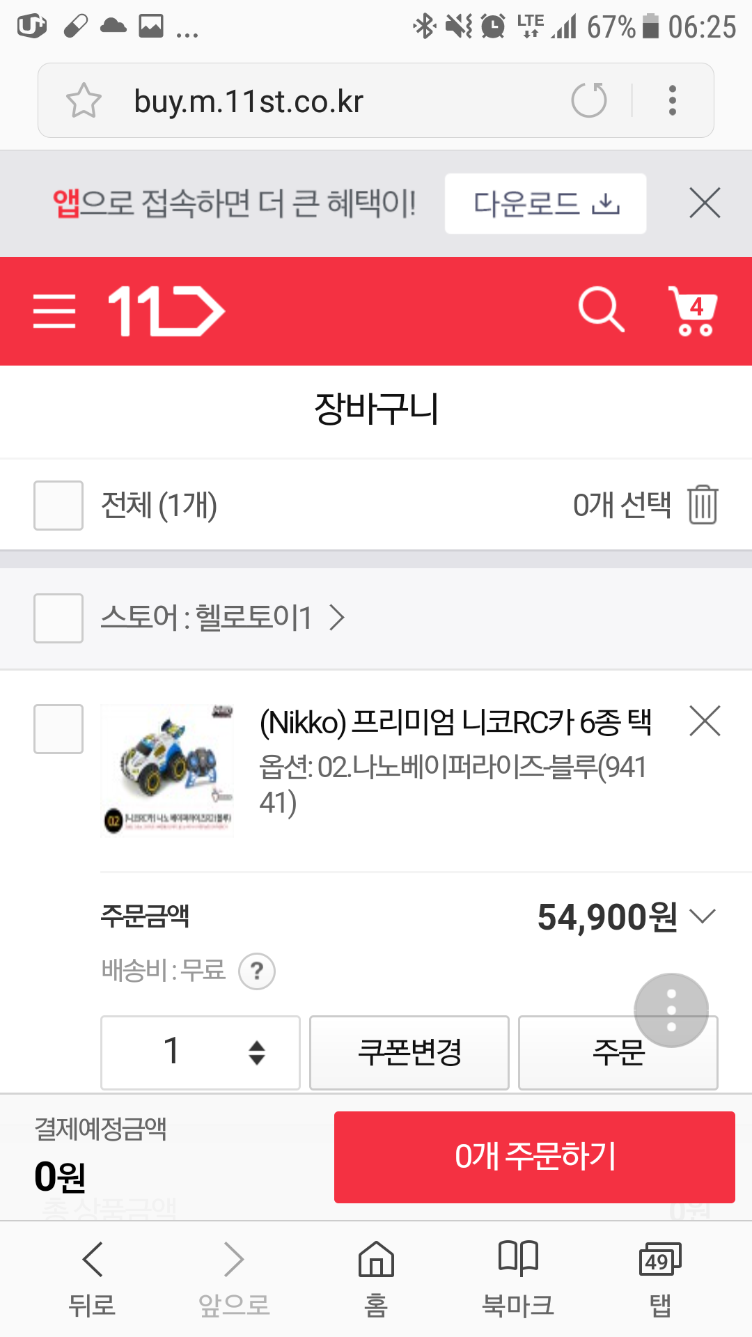 그렇게 엄마와 함께 장바구니에 담아놓은 조종 자동차였고 아빠의 결제만을 기다리고 있는 것이였다. 5월2일에서 3일까지가 회사 외부교육이라 못챙기로 어제 집에 와서야 꼼꼼히 집사람과 따져보았다.