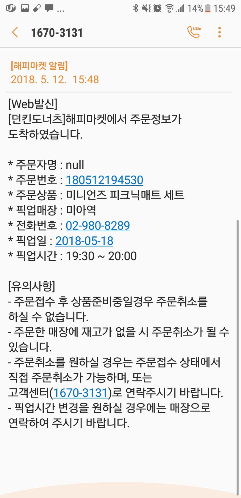 그리고, 매장에서도 도너츠 주문발주를 넣을때 픽업분량까지 고려해야한다고 했다. 그래서, 오전 픽업고객들에게는 따로 연락을 하기도 한다고 했다. 나같이 저녁에 오면 물량하고도 관련이 있다고 한다.