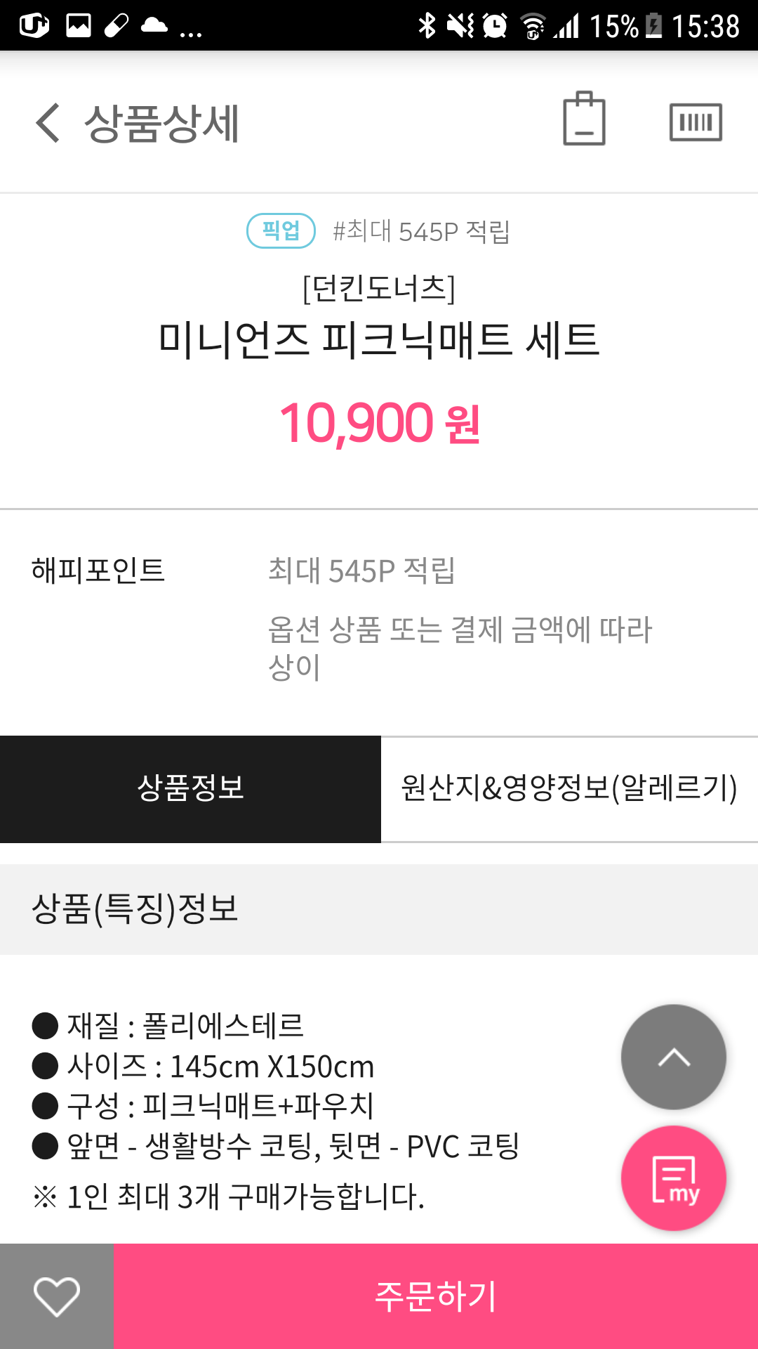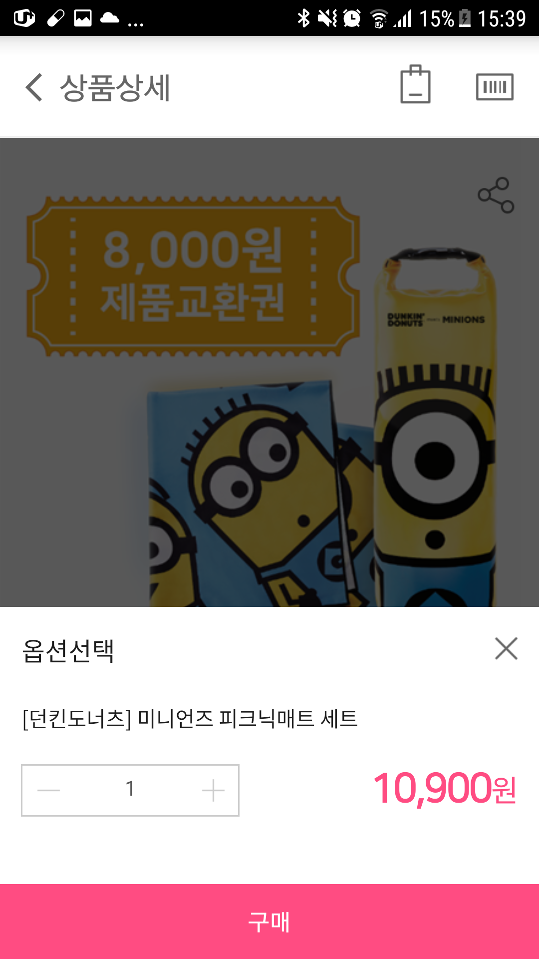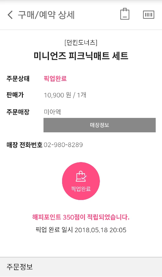 해피포인트 해피픽업으로 던킨 미니언즈 피크닉매트를 득템합니다.