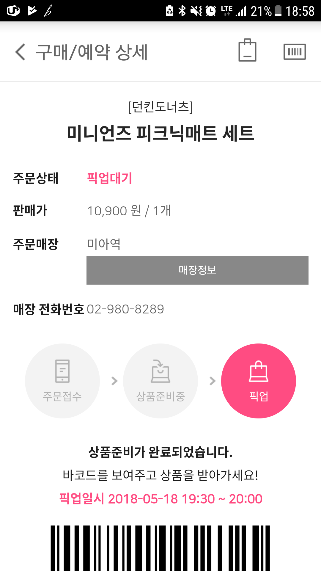 퇴근길이라 픽업시간에 10분 늦었다. 픽업시장이 30분이라 시간을 맞추어가는 것도 일이였다. 원칙적으로는 30분이 지나면 유효하지 않지만, 매장에서도 고객을 어느정도 배려해줘야하는 구조일 것이다.