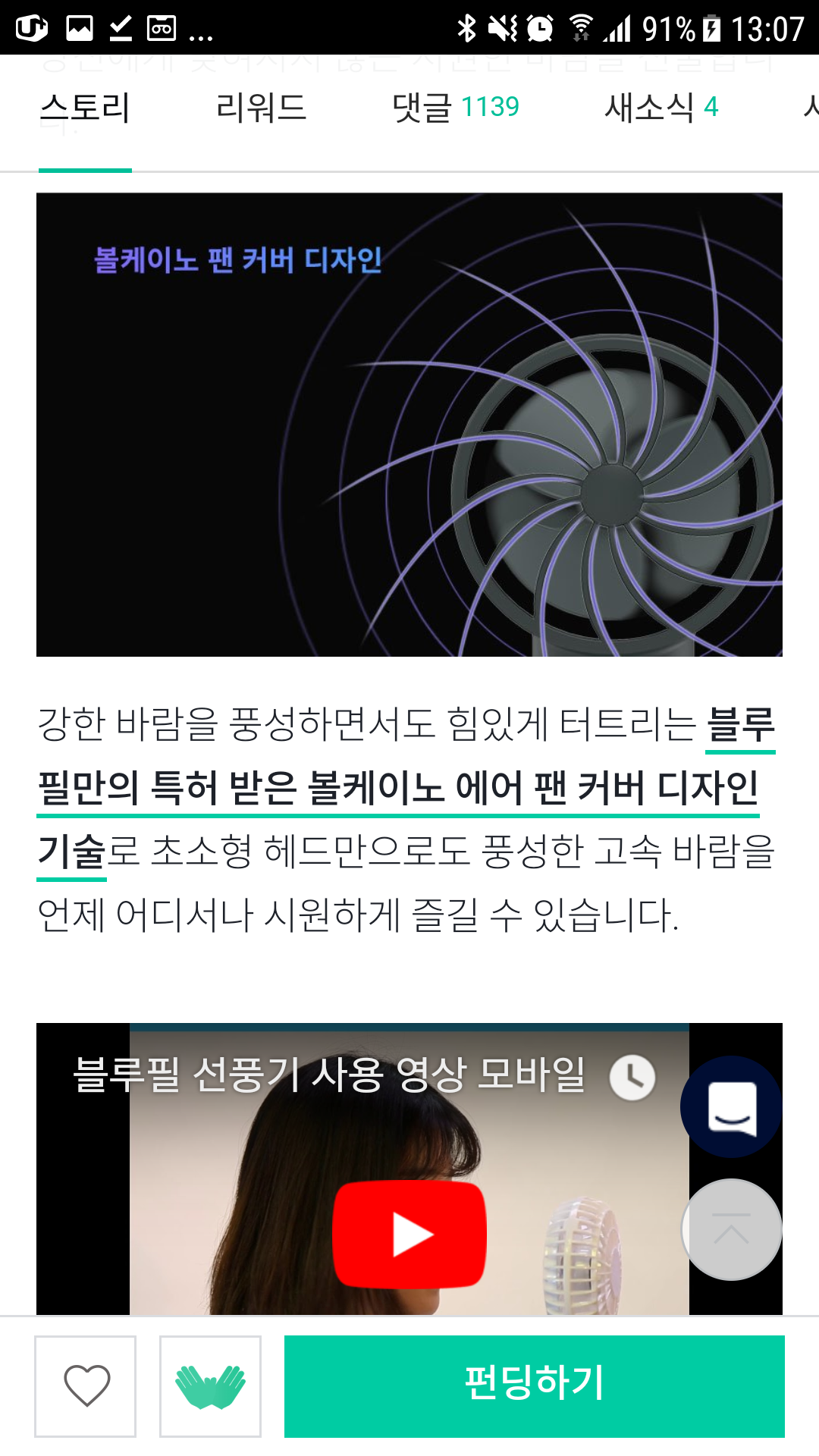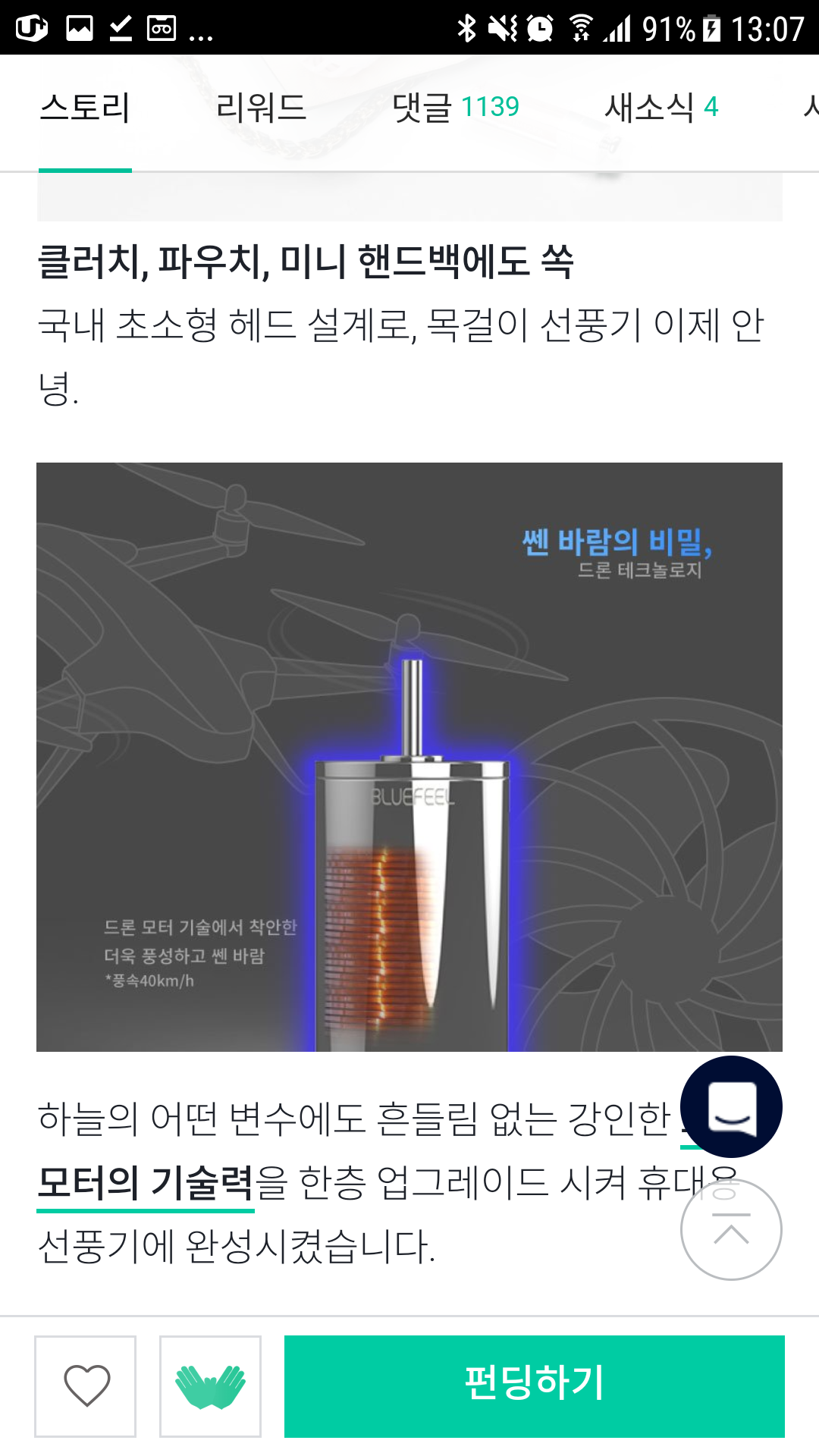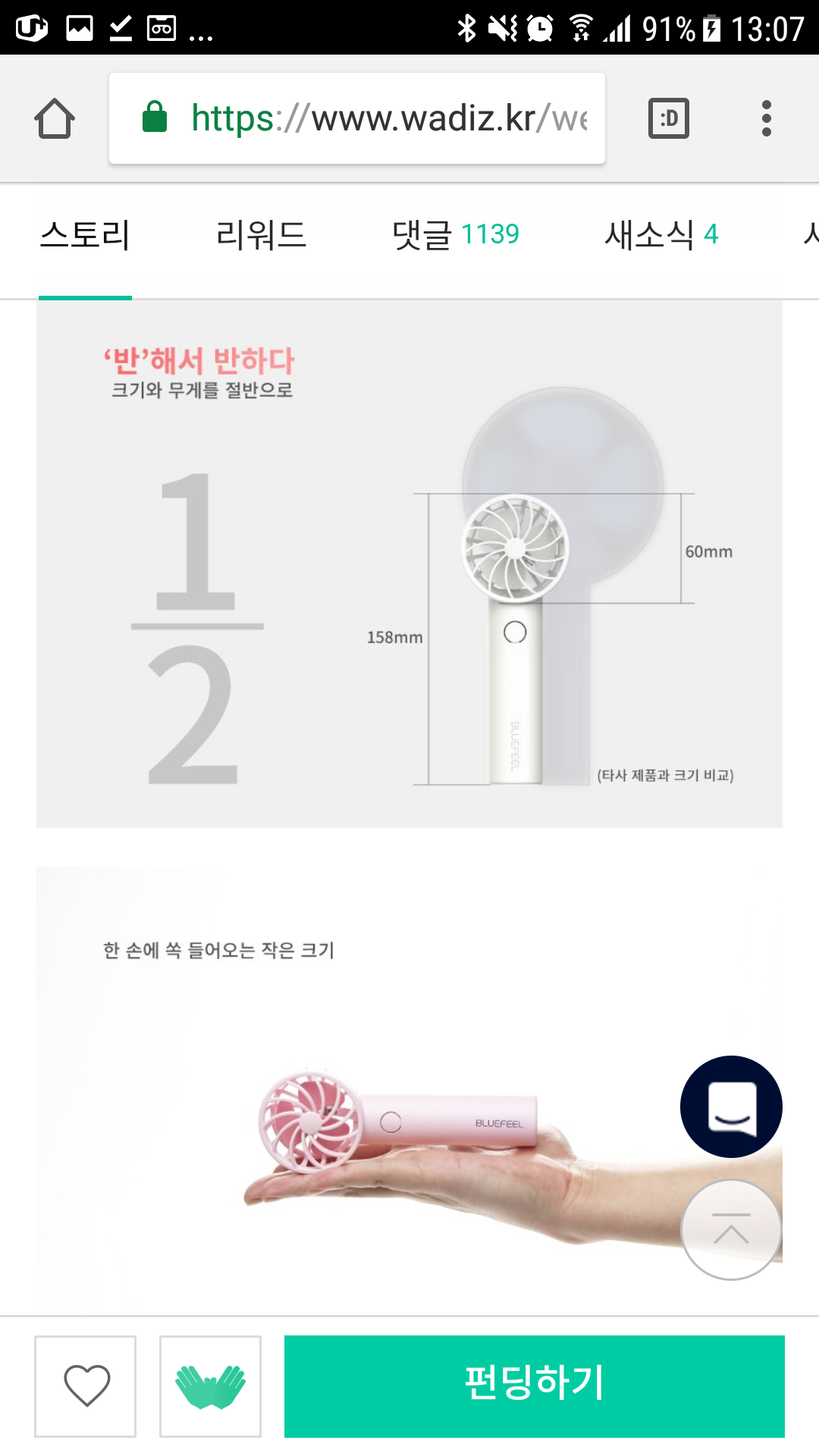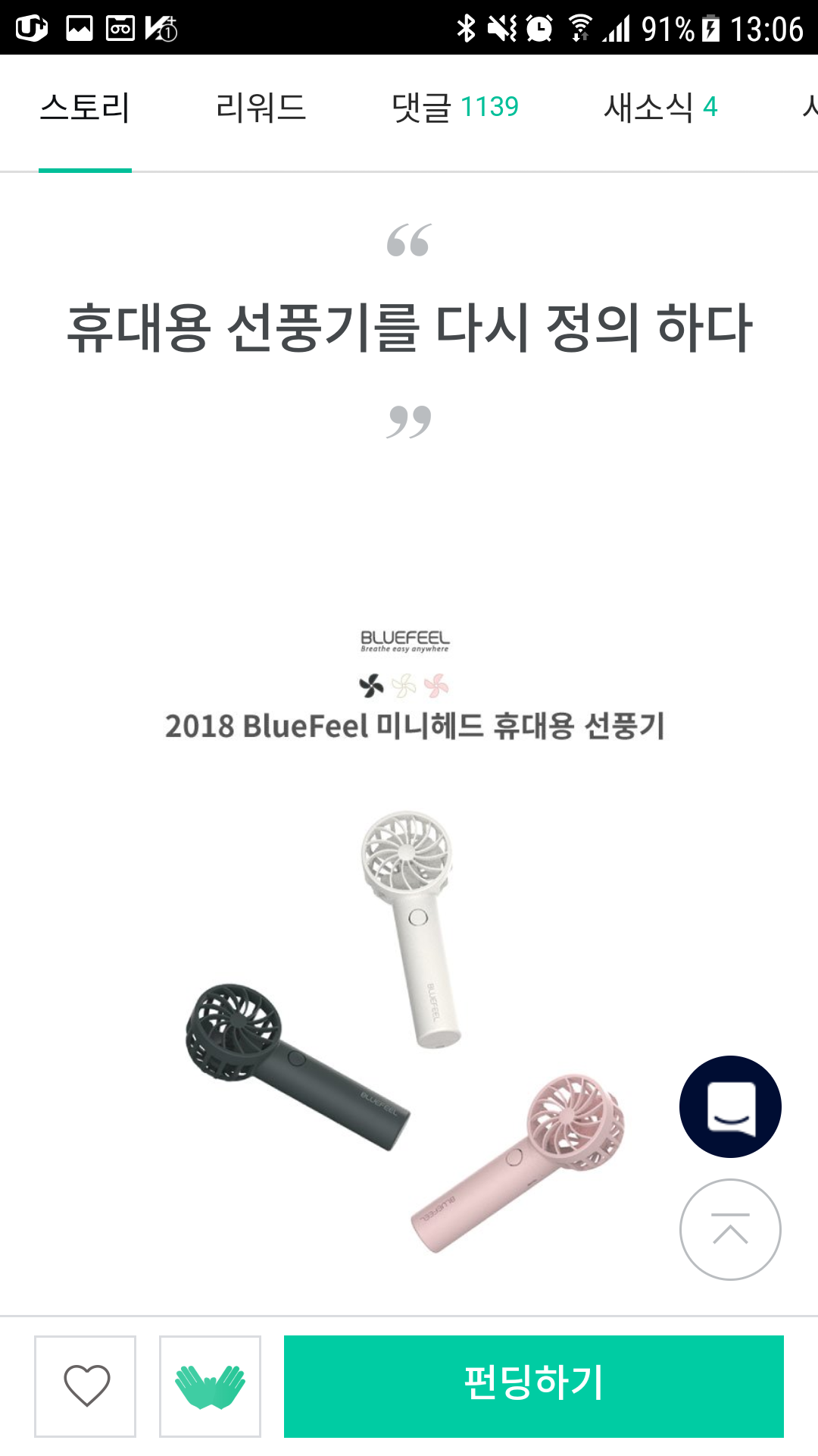 와디즈,블루필,BlueFeel,미니헤드선풍기,구매기,개봉기