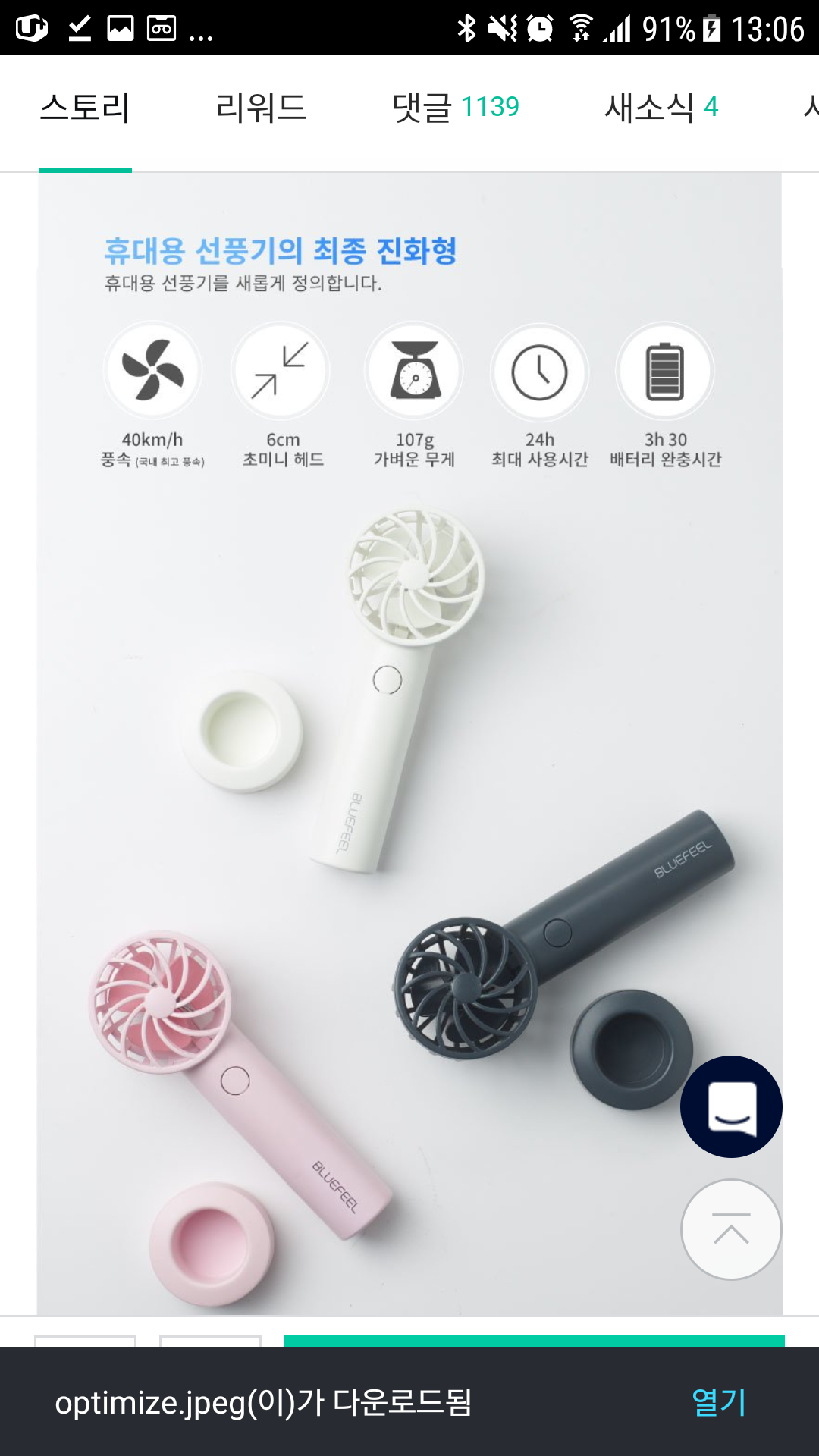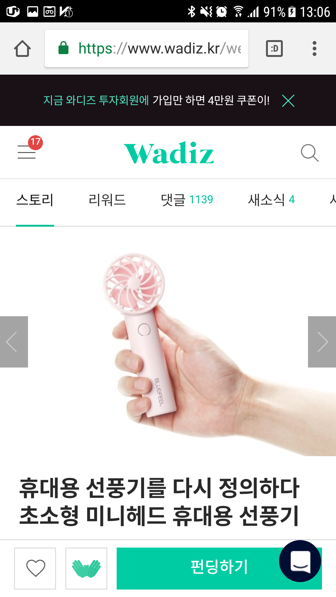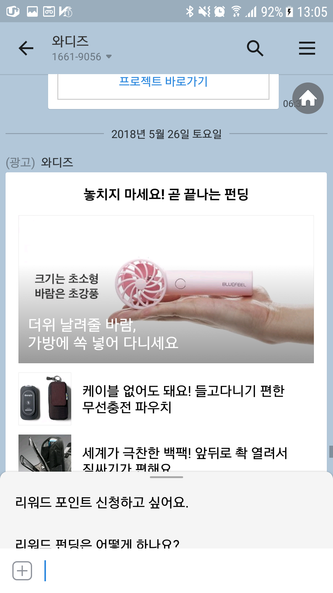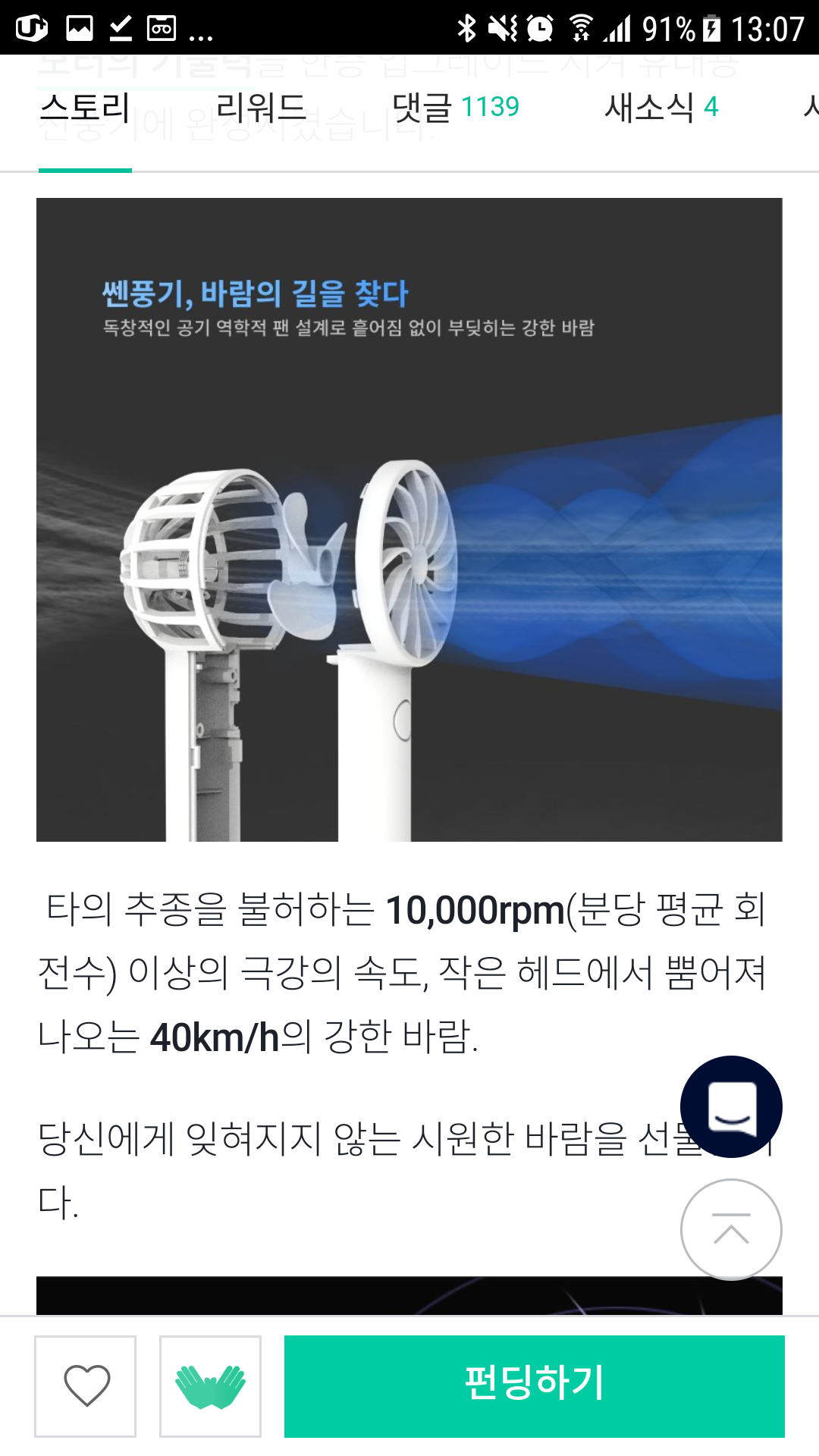 와디즈,블루필,BlueFeel,미니헤드선풍기,구매기,개봉기