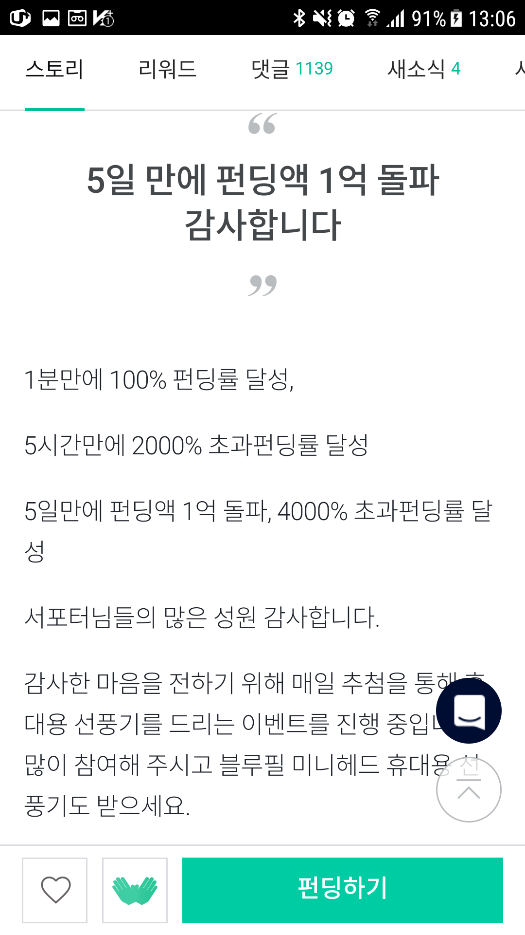 요새 펀딩 퍼센트 높은 거 위주로 온통 여기 저기 펀딩이다.