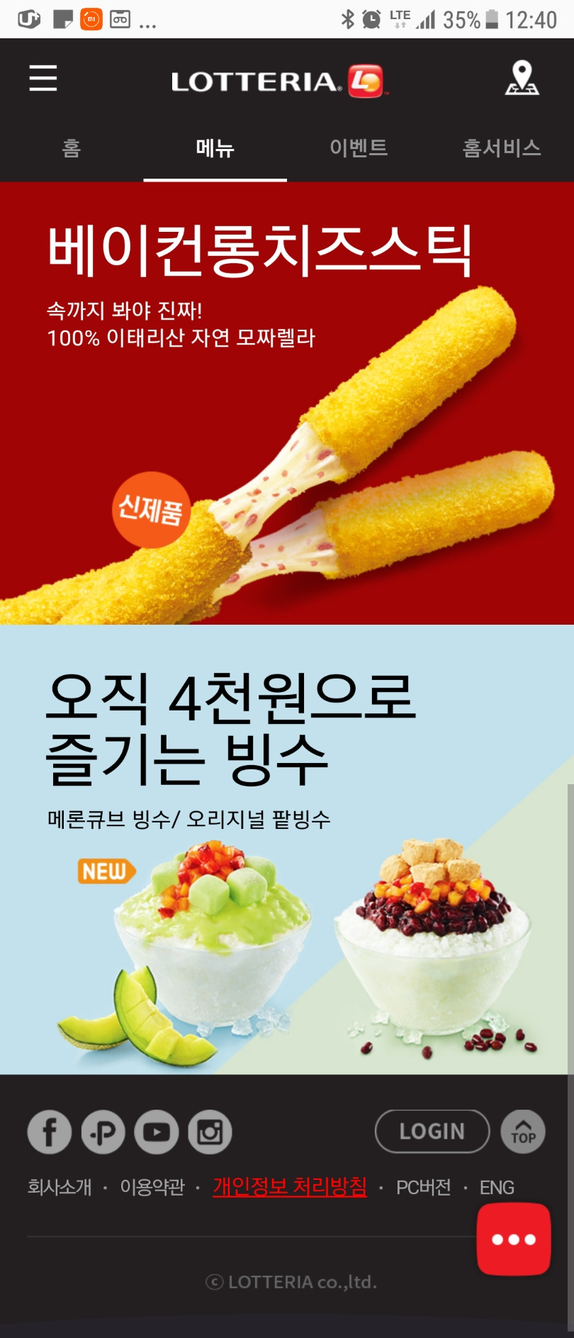 롯데리아,베이컨,롱치즈스틱,치즈놀이,팥빙수,롯데마트