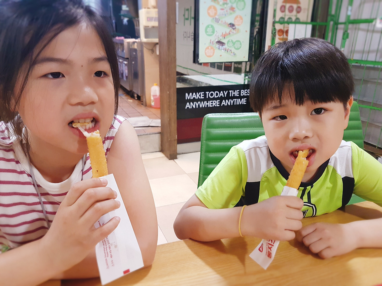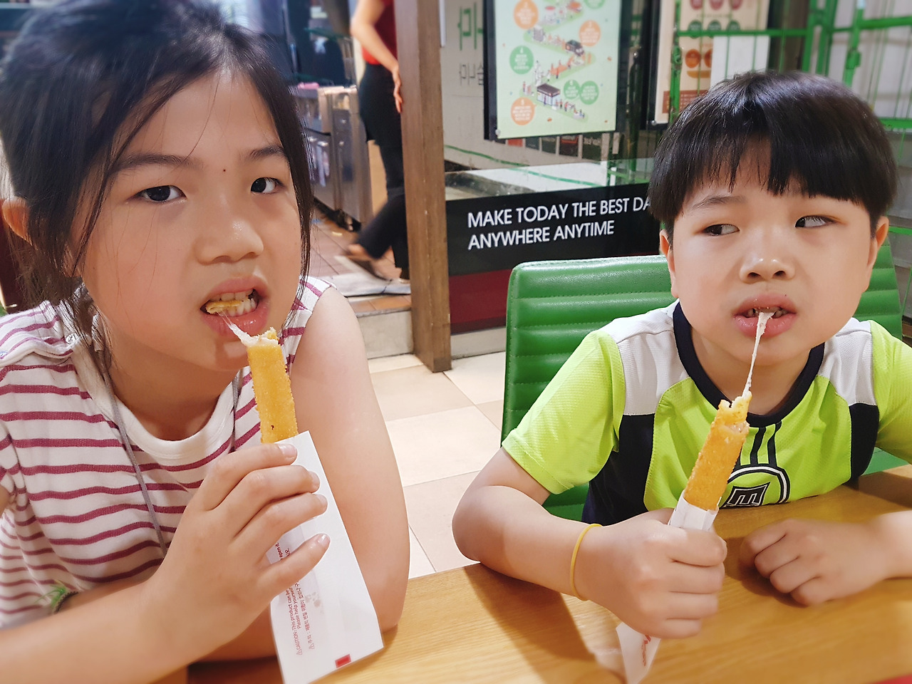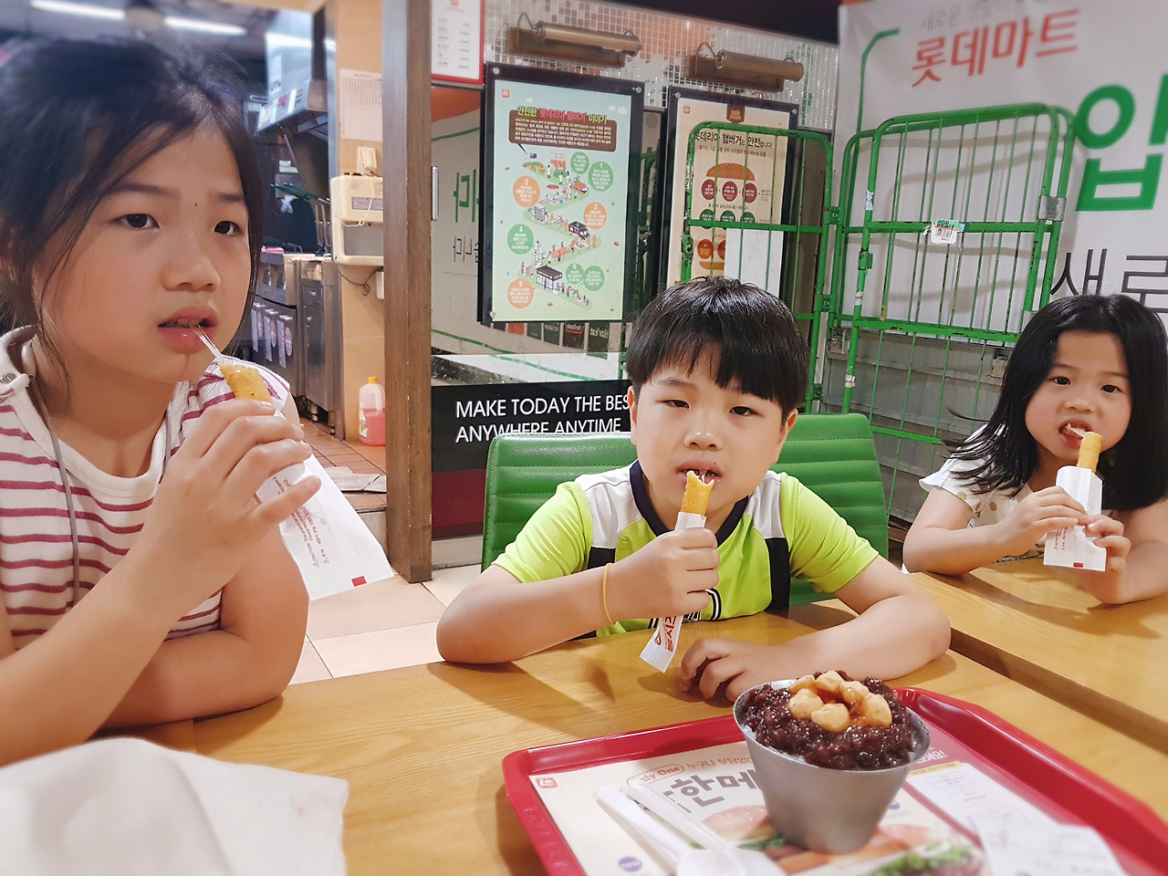 점심은 집에서 먹어도 배고픈 시간이라 2층 롯데리아로 간다. 내 머릿속에는 이미 아이들이 좋아하는 롱치즈스틱이 계획되어 있었다.