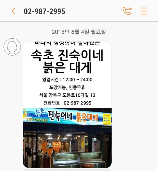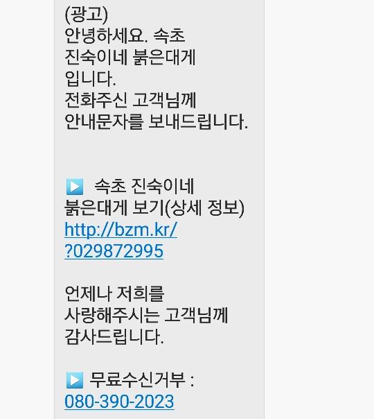 전화를 끊었더니 자동으로 관련정보 광고 문자가 왔다.