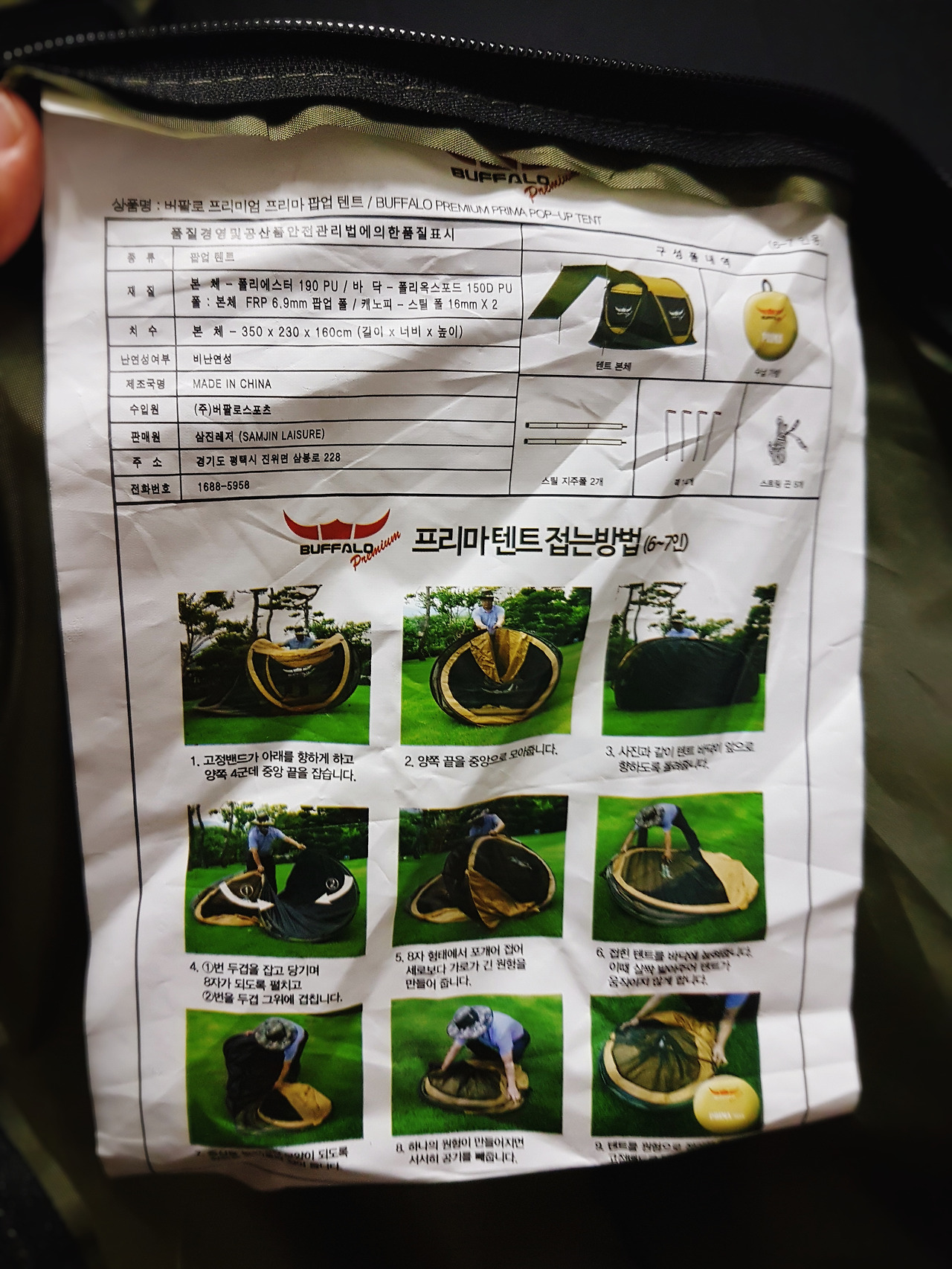 버팔로,원터치텐트,북서울숲,개봉기,사용기,버팔로프리미엄원터치프리마