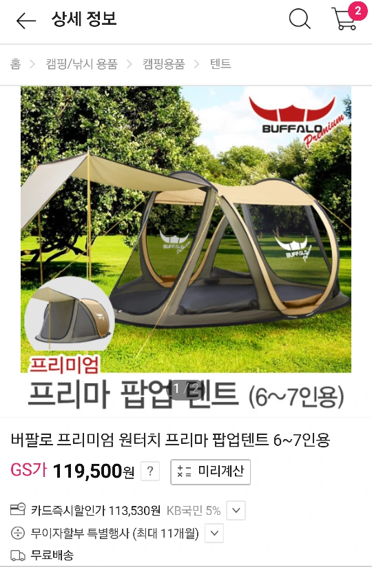 버팔로 프리미엄 원터치 프리마 팝업텐트
