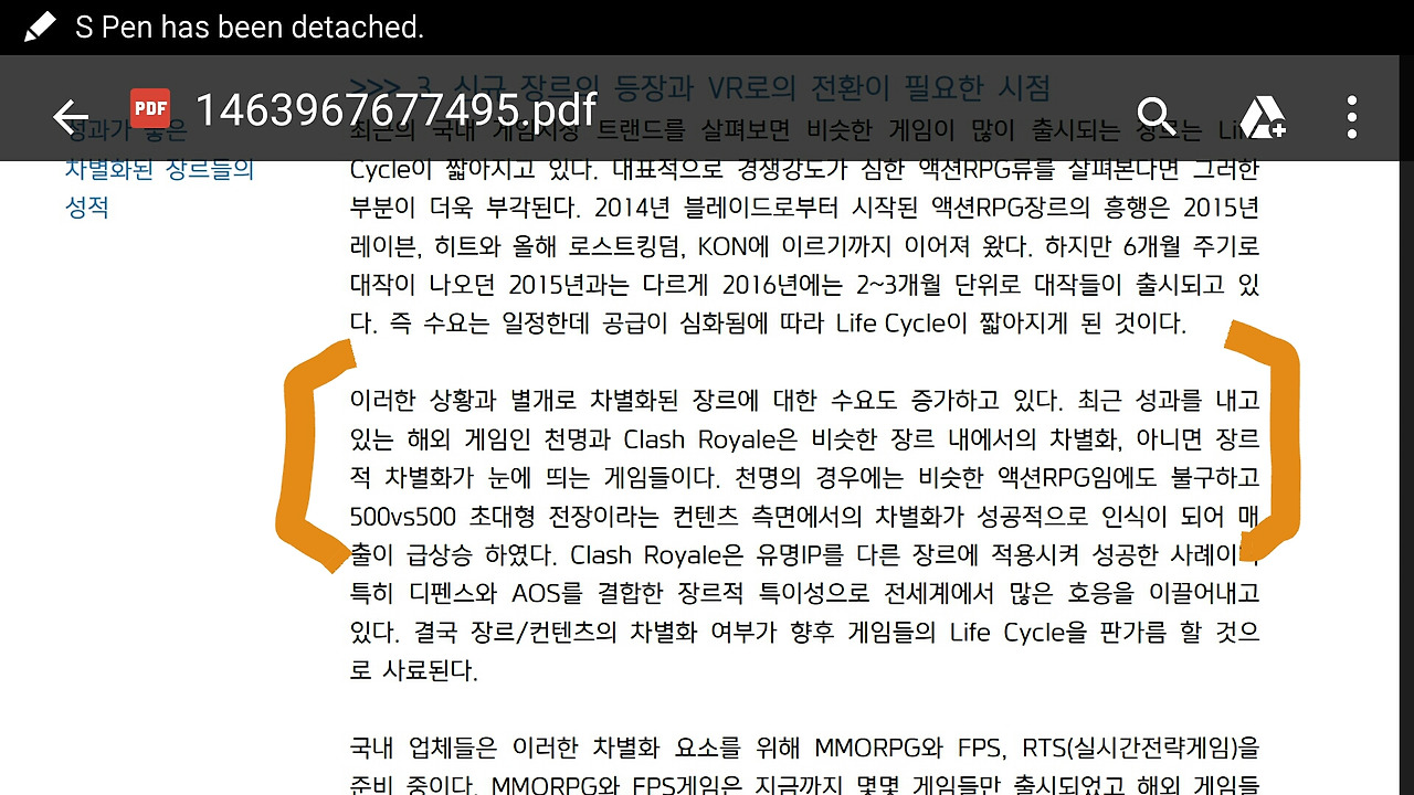 최근 성과를 내고 있는 해외 게임인 천명과 Clash Royale은 비슷한 장르 내에서의 차졀화, 아니면 장르적 차별화가 눈에띄는 게임들이다. 천명의 경우에는 비슷한 액션RPG임에도 불구하고 500vs500 초대형 전장이라는 컨텐츠 측면에서의 차별화가 성송적으로 인식이 되어 매출이 급상승 하였다. Clash Royale은 유명IP를 다룬 장르에 적용시켜 성공한 사례이다. 특히 디펜스와 AOS를 결합한 장르적 특이성으로 전세계에서 많은 호응을 이끌어내고 있다. 결국 장르/컨텐츠의 차별화 여부가 향후 게임들의 Life Cycle을 판가름 할 것으로 사료된다.