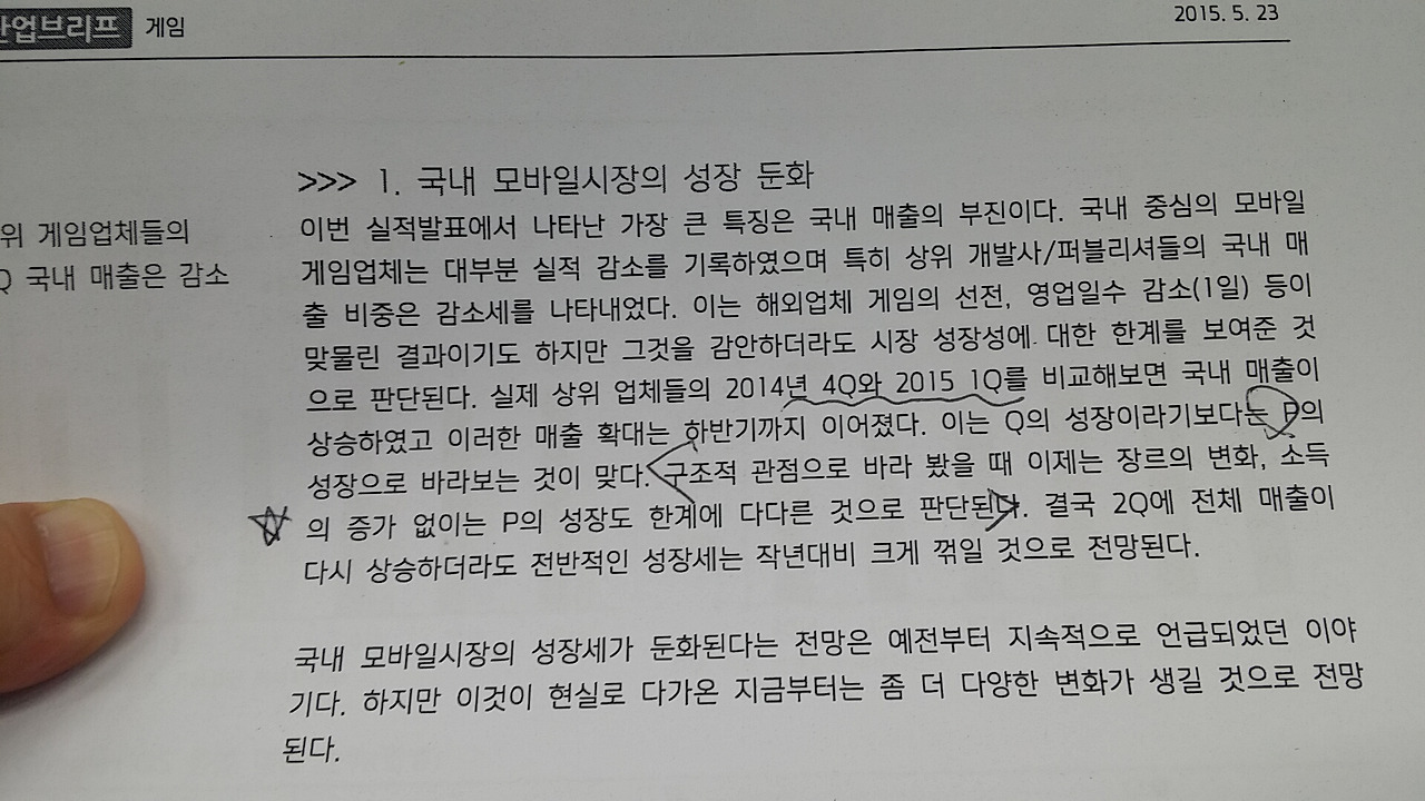 최근 게임업계의 성과가 발표되었는지 온통 게임업계의 대한 이야기가 가득하다. 물론 내가 주로 보는 종목이 인터넷/게임/미디어와 IT, 자동차이기 때문에 그것들만 크게 보이는 것도 사실이다.