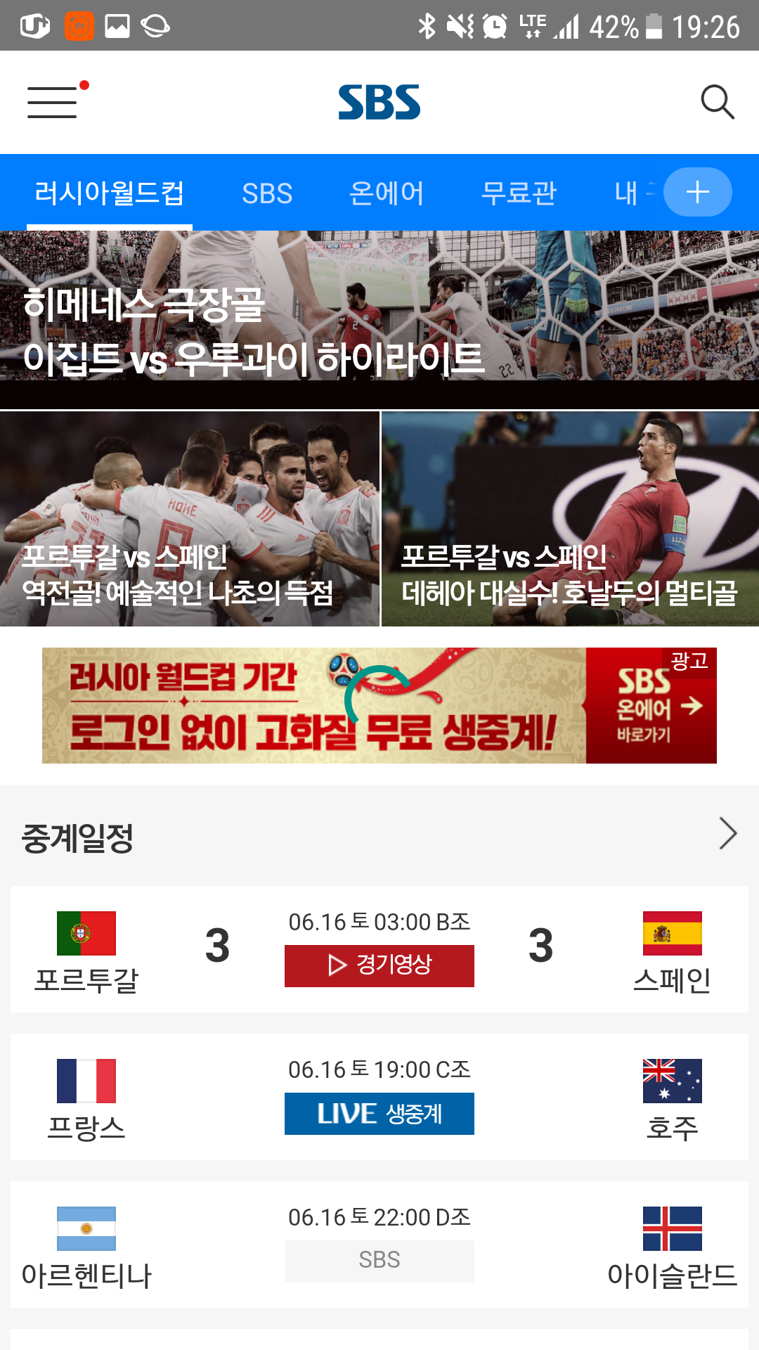 월드컵,SBS온에어송출,무료,SBS,축구,러시아
