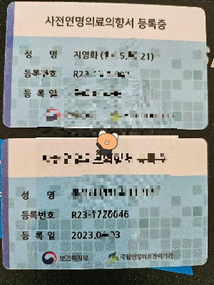 1. 무의미한 연명 치료 거부 (DNR 등록 완료)