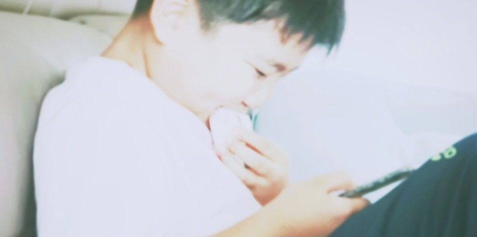 하교후.떡을 먹으며 엄마가 쓴 자신의 솥단지 이야기를 읽고,추억 떠올리는 열살. 그나저나 악몽이 아니라 다행입니다. 그의 보조개가 활짝 피었지요.아이 동의하에 올린 사진입니다 :D
