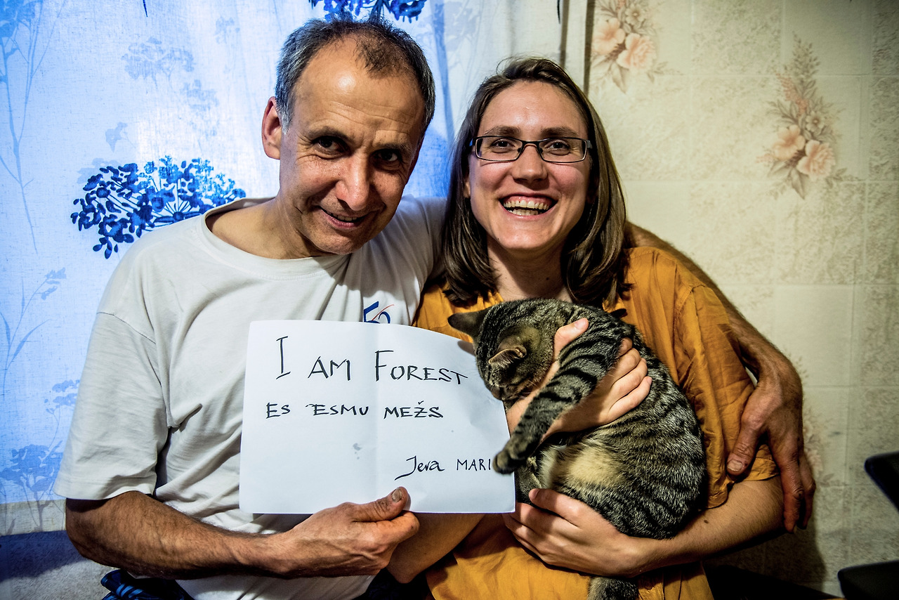 두 사람이 처음 만난 장소는 지역에서 개최된 한 문화 행사. 정확히는 지역민들이 교류하는 파티였다. 파티 분위기가 절정에 달할 무렵 커플 춤을 추다가 서로 감정이 오고 갔다는 것 같다. 두 사람의 일상을 가까이서 지켜본 바로 두 사람의 관계는 상당히 보완적이다. 엔지니어인 이에바가 이성적인 태도로 일상의 사건들을 분석해 의견을 제시하고, 화가인 마리스가 감성적인 방식으로 이에바의 의견을 부부생활에 흡수한다. 부부는 한몸이기 때문에 같이 사진을 찍어야 한다는 이에바의 강경한 주장을 고려해 개인별 사진은 찍지 않았다. 자필 메시지도 한 장만 적었음은 물론이다. 사진 속의 고양이는 두 사람이 키우는 반려묘다. 녀석과 한 방을 써야 했는데 서로 꽤 잘 지냈다.