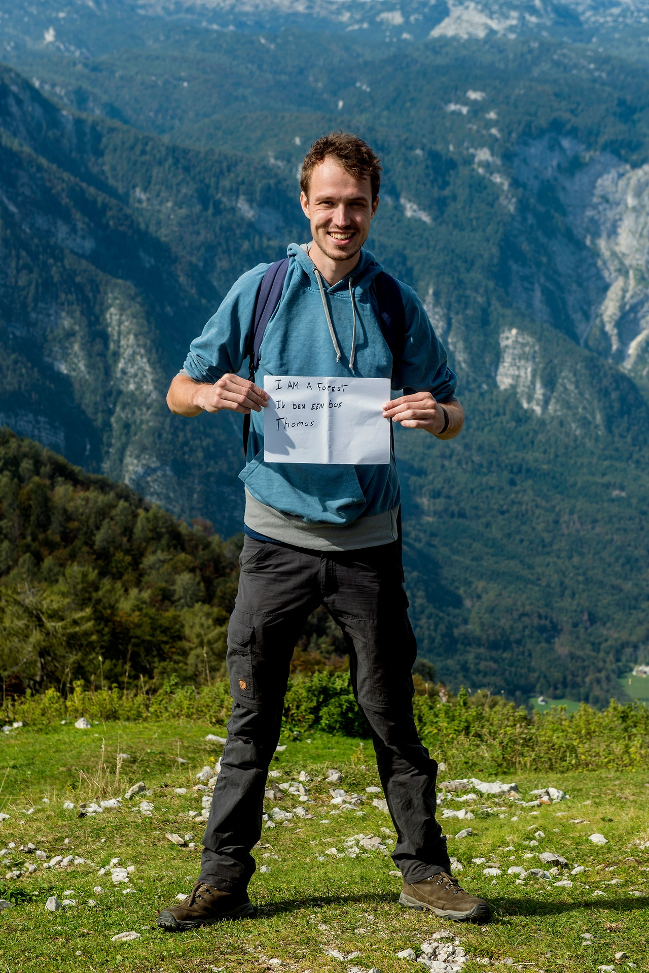 205cm의 신장에 다리도 길쭉한 토마스는 그 신체 조건에 비해 의외로 천천히 걸었다. 덕분에 호수의 절반을 아주 여유롭게 구경했다. 어쩌면 나에게 보폭을 맞춰 주었는지도 모르겠다. 촬영은 케이블카 전망대에서 했다. 그 아래로 펼쳐지는 숲의 장대한 파노라마가 무척 훌륭했다. 혼자 서 있는 사진이어서 토마스의 신장을 가늠하기가 어려울 수도 있는데 종이 대 사람의 비율을 유심히 살펴보면 그의 키를 어림짐작할 수 있을 듯하다. 그걸로도 부족하다면 같은 방식으로 아래의 사진과 비교해 보는 것도 방법이겠다. 프로젝트의 최장신 기록은 아직까지도 토마스가 보유하고 있다.