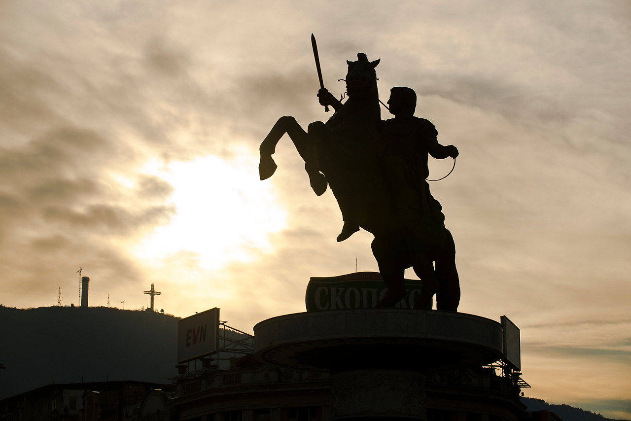 마케도니아는 고대 그리스와 자웅을 겨루던 화려한 과거를 근거로 내세우며 인류 최고의 정복자 중 하나인 알렉산더 대왕의 적통이 자신임을 주장하고 있었다. 그러나 따지고 보면 마케도니아는 유고슬라비아 연방이 해체하면서 탄생한 신생 독립국에 지나지 않았다. 그리스가 자국의 동일 지명을 거론하며 마케도니아의 정통성에 이의를 제기하고 있기도 했다. 아직까지는 변방의 약소국에 불과한 나라에서 동상으로 만들어 세울 만큼 대단한 업적을 구가한 인물이 과연 저렇게까지 많은지도 의문이었다.