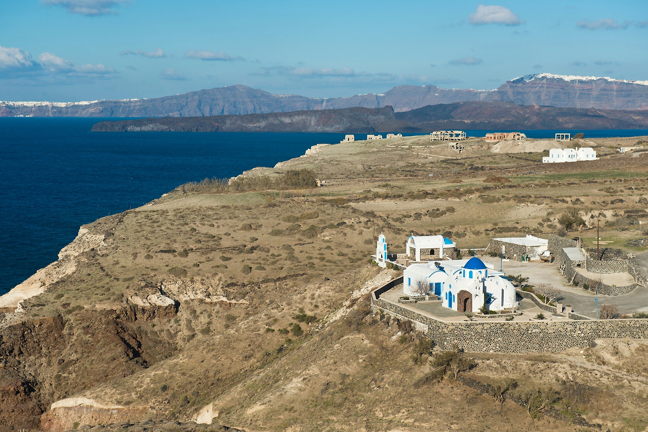 그리스를 여행하면서 가장 안타깝게 느껴졌던 부분은 국가 부도로 인한 사회 붕괴였다. 부도 이후 국가 전체가 상당한 어려움을 겪고 있다는 사실을 알려주는 풍경을 매일 마주쳤다. 현지인들 역시 참담한 경제 환경을 자주 언급했다. 짓다 만 건물들 역시 그리스가 겪는 고통을 증언했다. 세계적인 관광지인 만큼 산토리니는 괜찮을 줄 알았으나 그 사정은 본토와 크게 다르지 않았다. 섬을 구경하는 동안 짓다 만 건물 여러 동을 발견했다. 하여 그리스에 생명력이 다시금 움트기를 바라는 마음을 사진에 담았다. 결과물을 본 크리스티나가 철근이 보기 흉하게 잘 튀어나왔다면서 무척 기뻐했다.