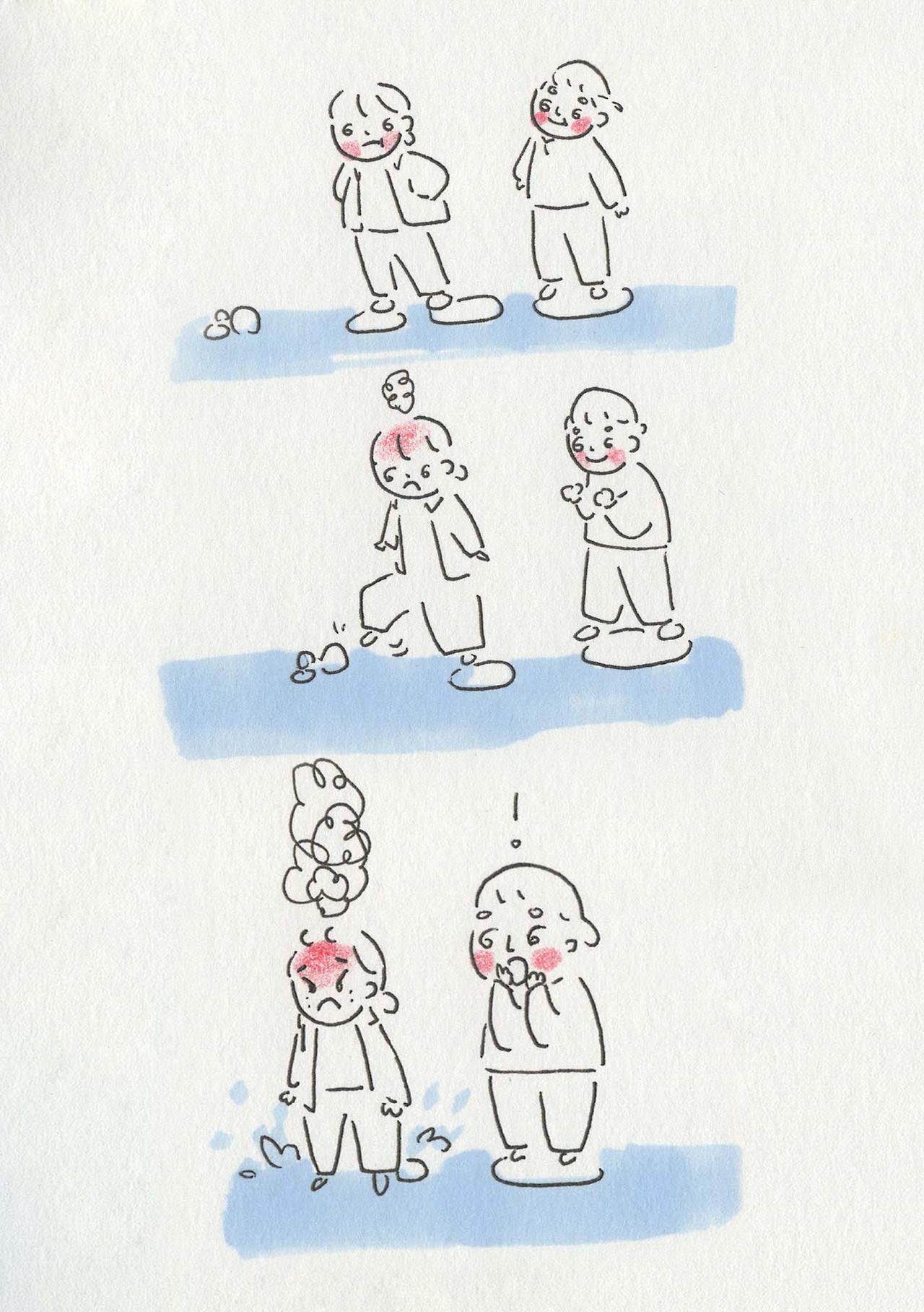 핑크 뮬리 바다를 건너 버스를 타기 위해 돌다리를 건너야 했다. 얼마 전 왔던 태풍으로 인해 돌다리의 틈 사이로는 수달이 지었을법한 집의 잔해가 끼여있었고 돌다리 사이가 넓은 곳과 넙적한 돌이 없어 조금은 작은 돌이 세워져 있는 곳도 있었다. '건널 수 있어!' 호기롭게 앞장선 영래는 흔들거리는 불안정한 돌을 만나 한참을 망설이다 그만 폭발해버렸다. 으악! 홧김에 신발을 신은 채로 그냥 물에 발을 담그고 걸어 나왔다. 이럴 거면 처음부터 그냥 물에 발을 담그고 걸어올걸. 바보 같은 선택이었다. 양말이라도 벗을걸.