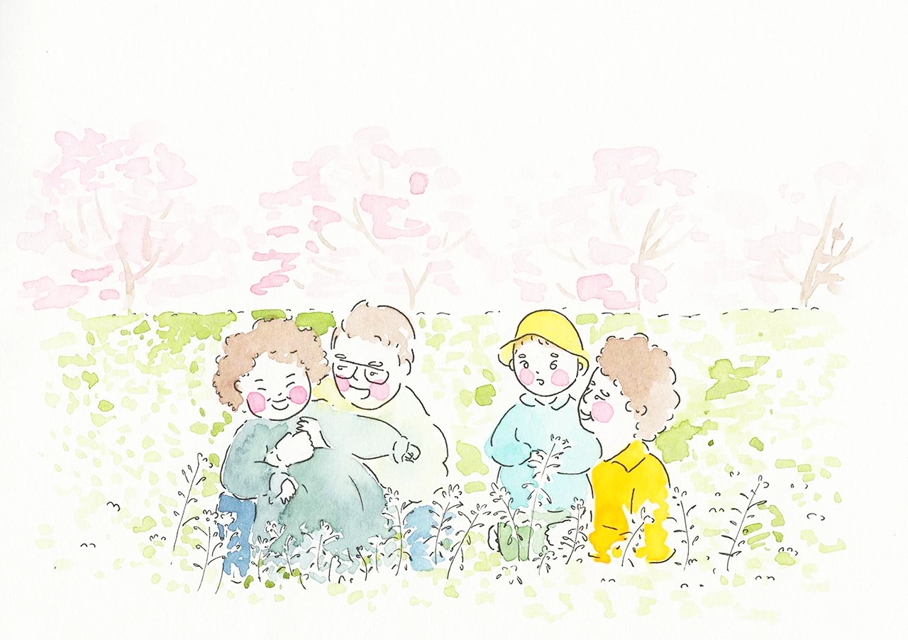 할머니는 냉이 된장국도 좋아하시지만 냉이꽃도 좋아하신다. 사랑한다는 표현이 더 좋으려나. 냉이에 대한 사랑은 사진 한 장으로 더욱 커진다. 뽀글뽀글 실험에 실패한 박사님과 같이 폭탄 머리를 하고 있는 나와 나의 남동생 그리고 할머니와 할아버지가 환하게 웃고 있는 사진.