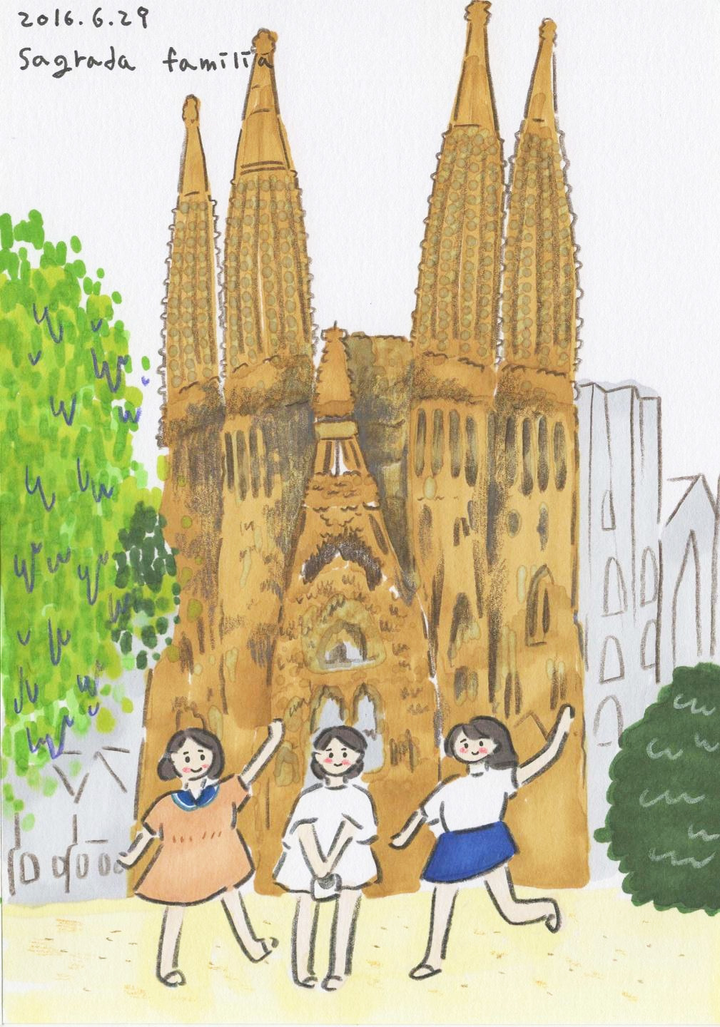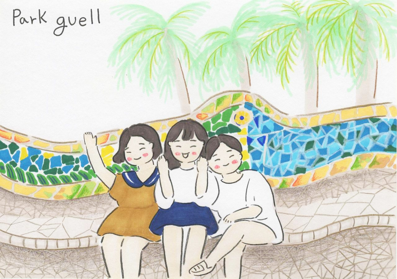 아침에 일어나 가장 먼저 찾은 곳은 구엘 공원. 뜨거운 햇살을 가르며 걸어온 우리였지만 5시 30분부터 입장이 가능하다고 하였다. 다시 먼길을 돌아 사그라다 파밀리아로 출발. 구글 지도가 없었더라면 어떻게 찾아갔을까 하며 민지, 영래, 영주는 셋이서 나란히 계속 걸어갔다. 생각보다 길어진 이동시간으로 배고파진 우리는 눈에 들어오는 피자집으로 들어가 식사를 했다. 우리에게 지역 맛집 탐방은 관심 밖이었다. 배고픔이 우선.