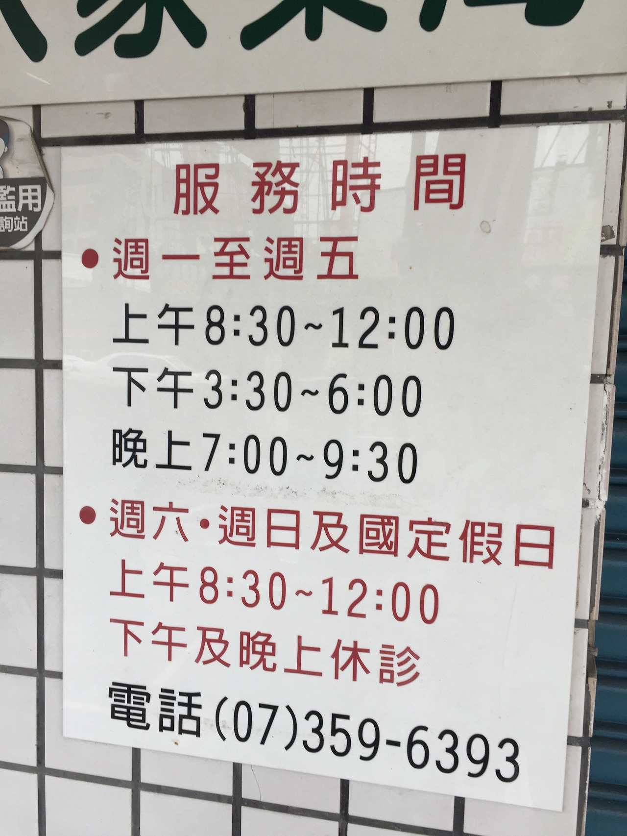(3) 병원 처방전을 가지고 가면 약국에서 약값을 계산하지 않아도 된다. 동네병원은 치과의 경우 50원, 이비인후과는 150원 가량이다. 나는 대만에서 근무하고 있으므로 학교에서 의료보험카드(建保卡)를 발급해 주었고, 의료보험료도 내고 있다. 개인적으로 대만에서 가장 마음에 드는 부분은 의료 시스템이다.