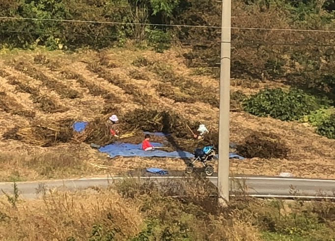 동네 할머니들과 첫째 아이가 가까워진 것은 이사 온 지 얼마 안 되어 깨를 함께 털면서다. 동네가 한눈에 내려다보이는 거실 창밖으로 할머니 두 분이 밭에서 깨를 털고 있는 모습을 본 첫째는 단번에 달려 나갔고, 곧 깨 터는 팀에 합류했다.