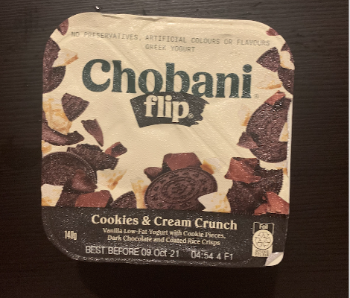 커버를 열면 쿠키 앤 크림 과자 부스러기가 모서리에 있어 살짝 접어서 요거트와 섞어 먹으면 맛있는 다이어트(?).
