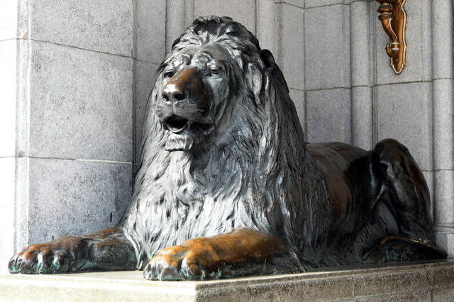 니혼바시 미츠코시 백화점 입구에 있는 사자 상은, 전쟁터에 끌려가지 않기 위해 작업을 펼친 경우다. 1914년 런던의 트라팔가 광장 사자 상을 모방해 만든 이 동상은 자진해서 해군에 먼저 봉납하는 형태를 취했다.