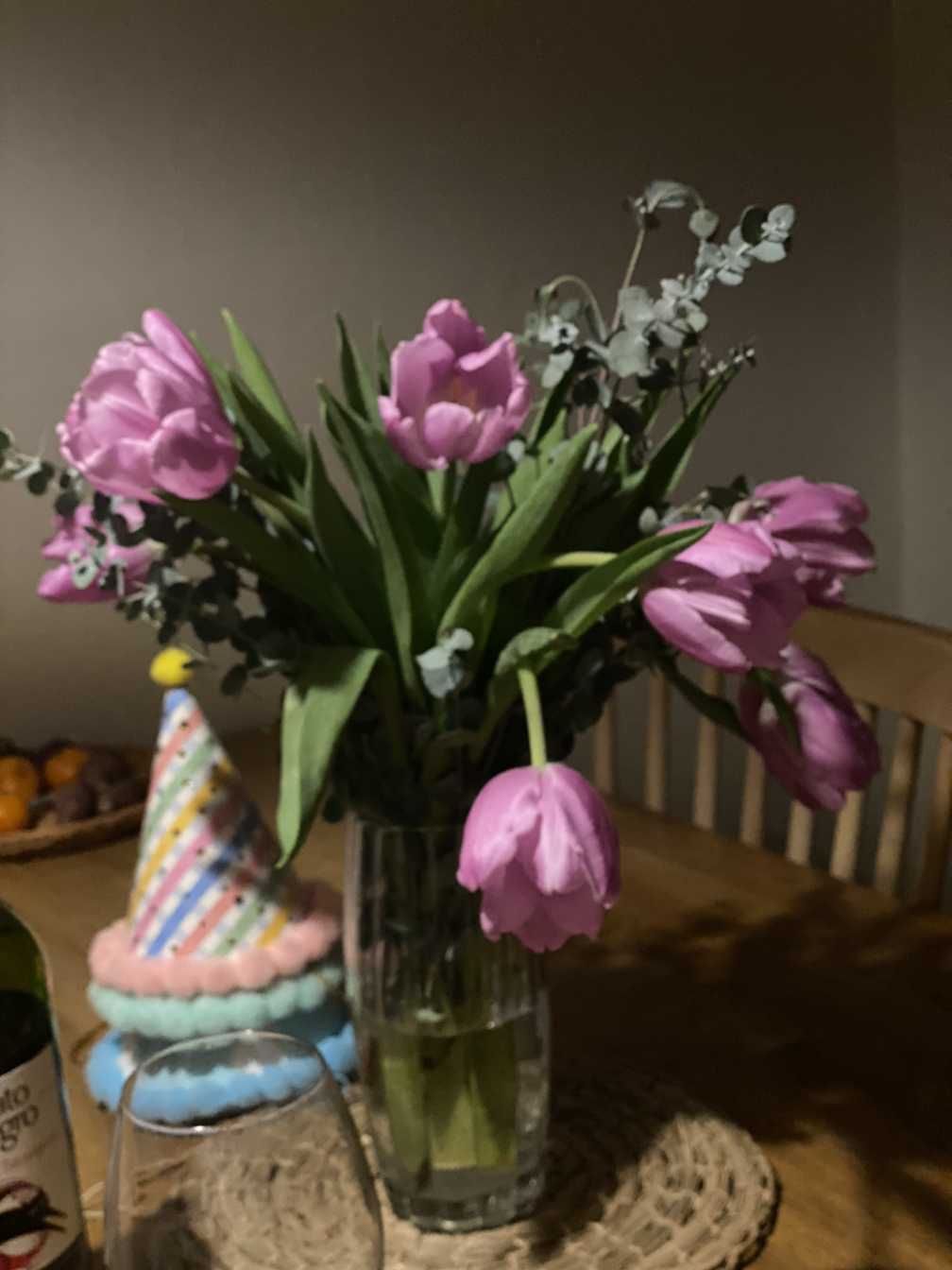 아이들 생일파티는 그야말로 우당탕탕 엉망진창이었다. 내 맘 같지 않을 줄은 알았지만 좀 지치는 식사였다. 상을 치우려는데 꽃이 활짝 피어 있었다. 알고보니 꽃병에 꽂아만 두고 물도 안줬는데..