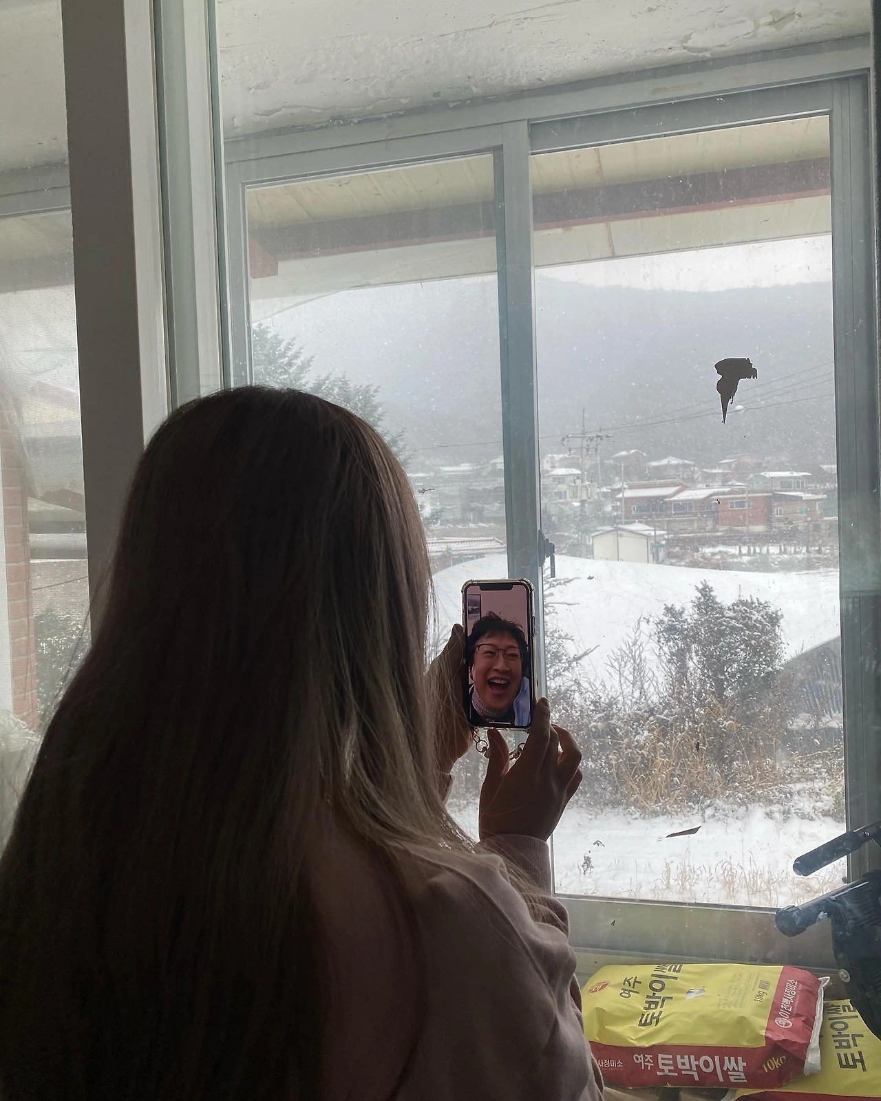 실시간으로 눈이 펑펑 내리던 어제는 엄마가 같이 있던 언니에게 눈 온다는 소식을 듣고는 영상통화를 걸었다.