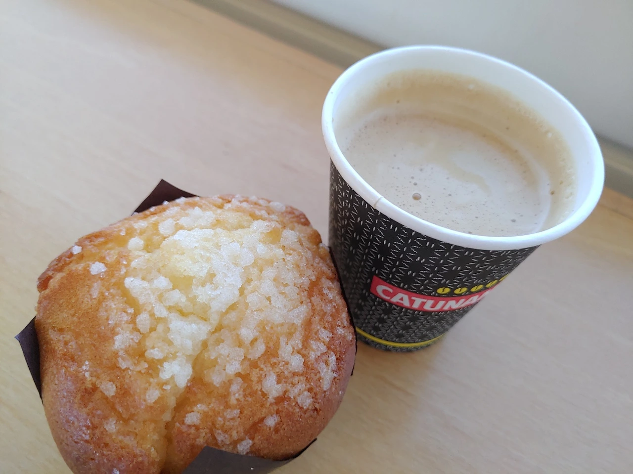 첫차를 기다리며 먹은 음식들. 커피는 굿. 빵은 그럭저럭)