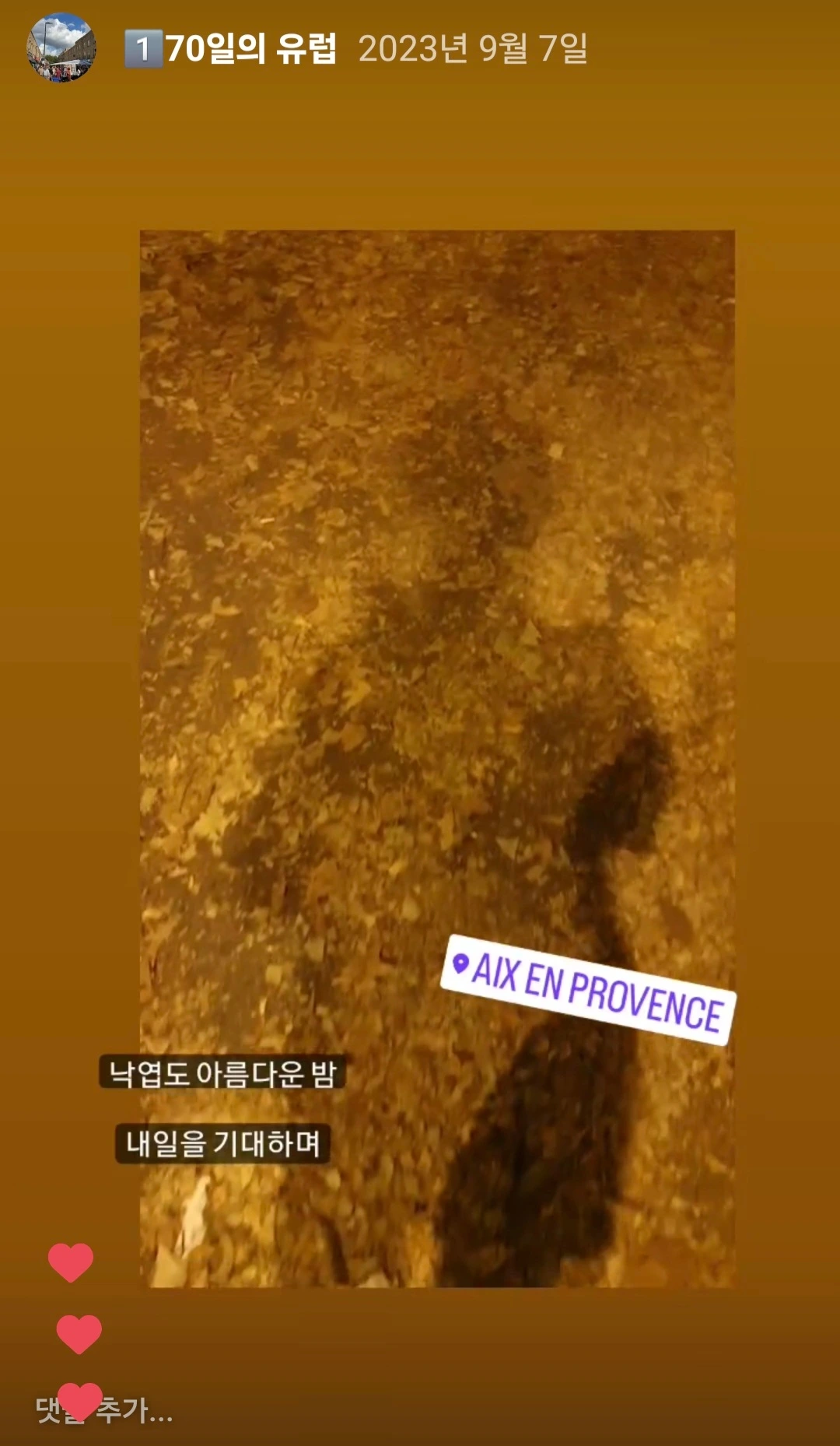거리와 식당에서 받은 친절이 밤의 따스함으로 전이된 걸까? 마음이 구름에 붕 뜬 것 마냥 몽글몽글해서 마을의 밤거리를 영상에 담는다. 떨어진 은행잎을 보며 탄성을 내지르는 순간을 인스타에 올린다. 모두와 나누고 싶은 포근한 밤이다.