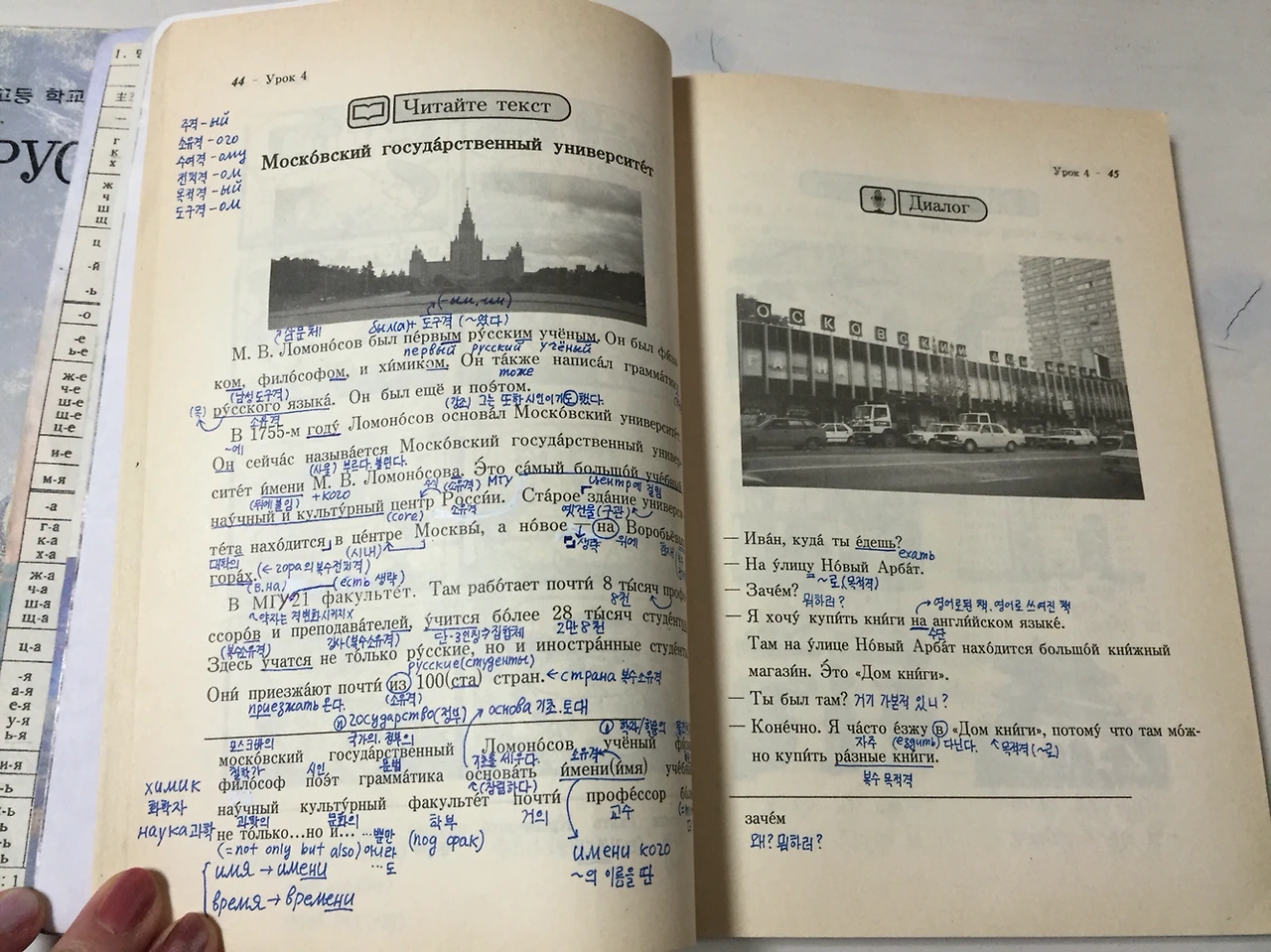 그때만해도 영어 공부의 압박이 사방에서 짓눌러오니 상대적 관성으로 러시아어에 더 집중하게 되었다. 러시아어 교과서가 마르고 닳도록 봤다. 시험공부하라고 시키면 더 다른짓을 하고 싶은 심리인데, 좀 더 발전적 형태라고나 할까.