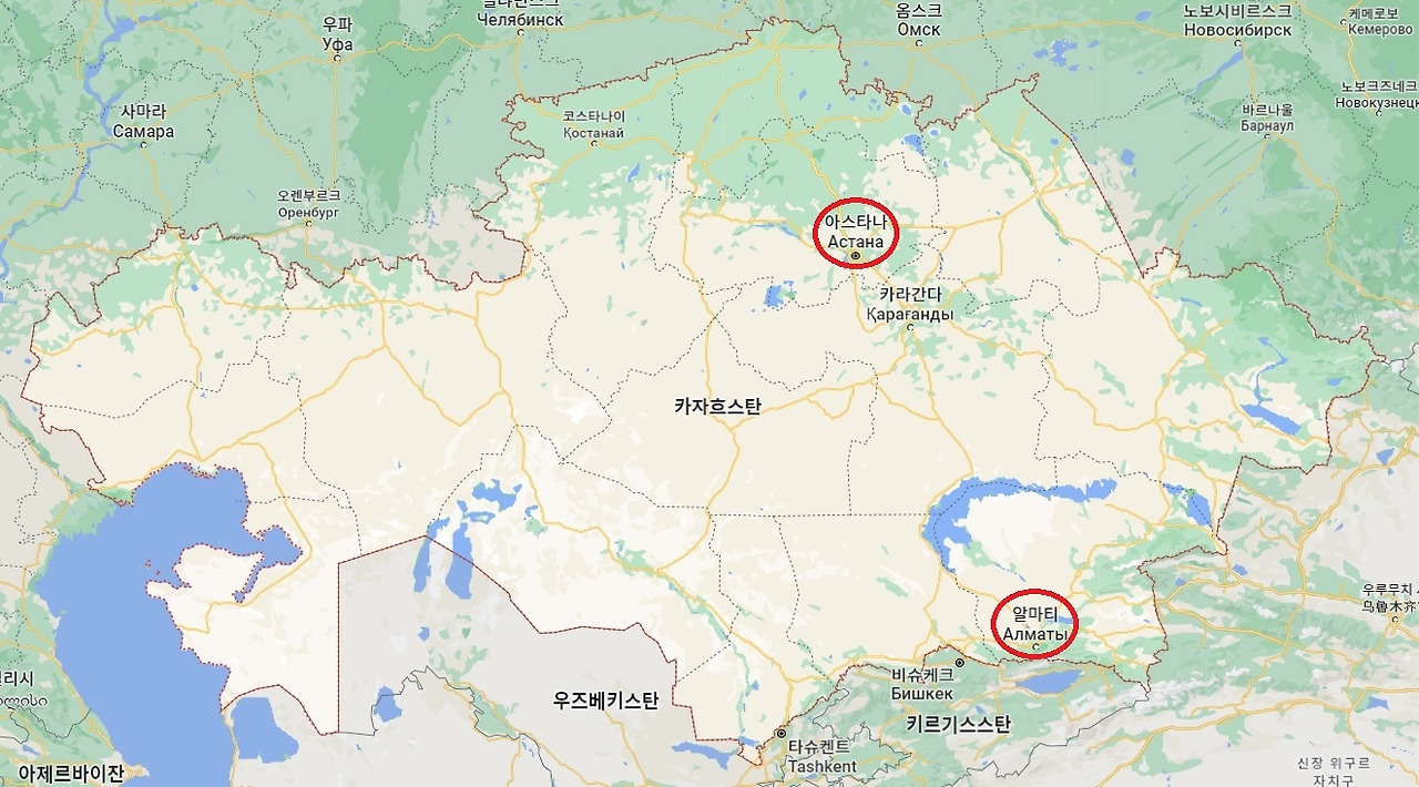 현재의 수도인 아스타나는 조금만 올라가면 러시아가 나올 정도로 북부에 있고,