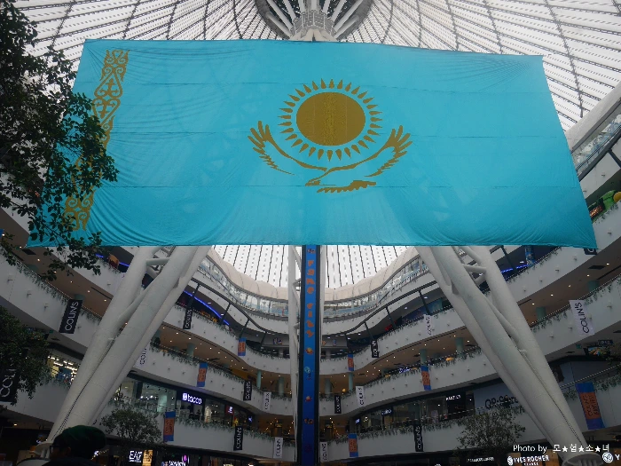 아스타나 거대 쇼핑몰 메가 실크웨이와 한샤티르. 카자흐스탄 거대 국기가 인상적이다.
