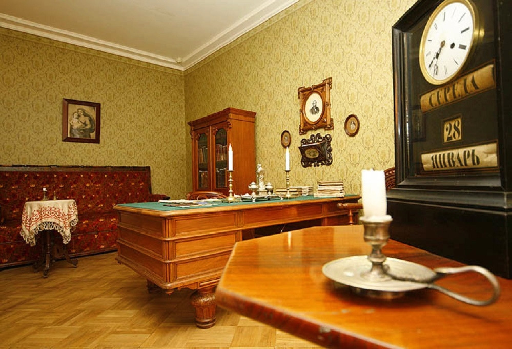 도스토옙스키의 작업 공간. 그가 사망한 시각에 멈춘 시계(출처: flectone.ru)