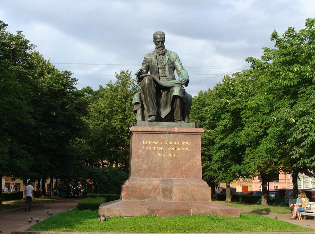 림스키-코르사코프 음악원은 피아니스트 겸 작곡가 안톤 루빈슈테인 주도로 러시아 음악협회 클래스 기반으로 1862년 설립돼, 1896년 재건한 옛 상트페테르부르크 볼쇼이 극장 건물에 자리 잡았다. 첫 우수 졸업생인 차이콥스키를 비롯하여 쇼스타코비치, 프로코피예프 등 당대 유수한 음악가들이 바로 이 콘서바토리에서 배출되었다. 콘서바토리는 1944년부터 전문 작곡 및 음악 이론 교육의 큰 공여자인 림스키-코르사코프 이름을 따르고 있다. 콘서바토리 근처 치아트랄나야 광장 공원에 그의 동상이 있다.