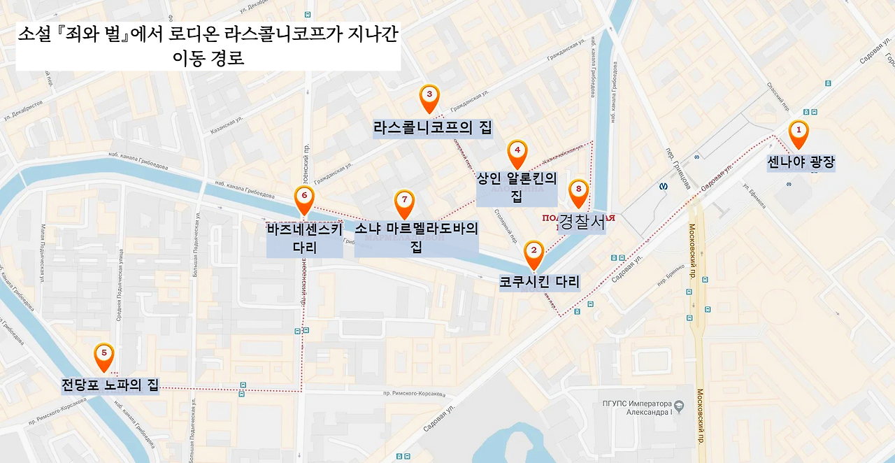 소설 『죄와 벌』속 장소들까지 간략하게 훑어보려고 한다.