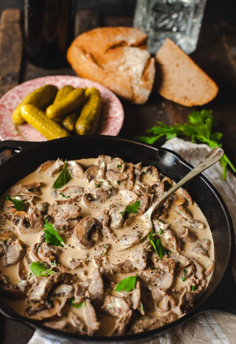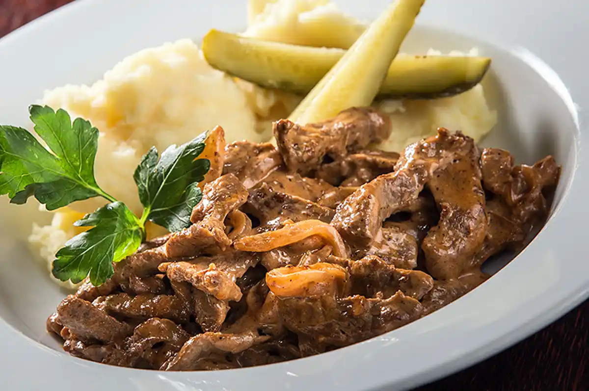 잘게 썬 소고기 요리 베프스트로가노프(출처: lifehack365.ru)