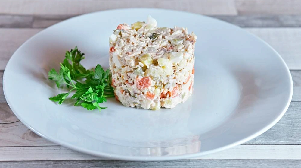 이후 1950~1960년대에는 이 샐러드에 닭고기 등 육류 대신에 사각의 소시지를 넣고, 삶은 당근, 절인 오이, 완두콩 등을 넣어서 만들어 먹기 시작했다. 소련 시절 당시 일부 재료는 구하기 쉽지 않았으므로 재료를 충당하기 위해 주로 휴일에 샐러드를 만들게 되었다. 그렇게 자연스레 올리비에는 휴일이나 새해 때 즐겨 먹는 요리로 정착했다.
