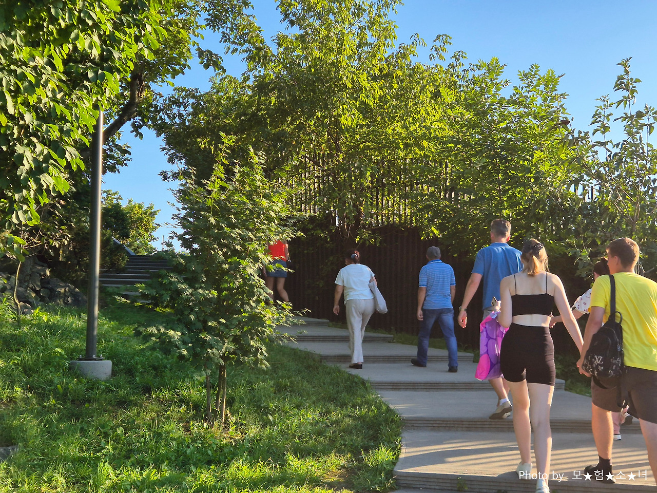 특별히 다른 글을 통해 이미 소개한 적 있는 전망 공원인 나고르니 공원은 손에 꼽을 정도로 멋졌다. 2021년 처음으로 대중에게 개방된 이래 도시 최고의 휴식처로 자리잡았다. 쉼터, 공연장, 강의장, 카페, 화장실 등 편의시설도 갖추고 있다. 나도 온라인으로만 보다 직접 가서 보니 그 규모가 엄청났고 시설도 생각보다 깨끗해서 놀랐다. 가족 단위로 휴식과 전망을 즐기러 오는 이들로 가득했는데 소풍 오기 딱 좋은 장소라는 생각이 들었다.