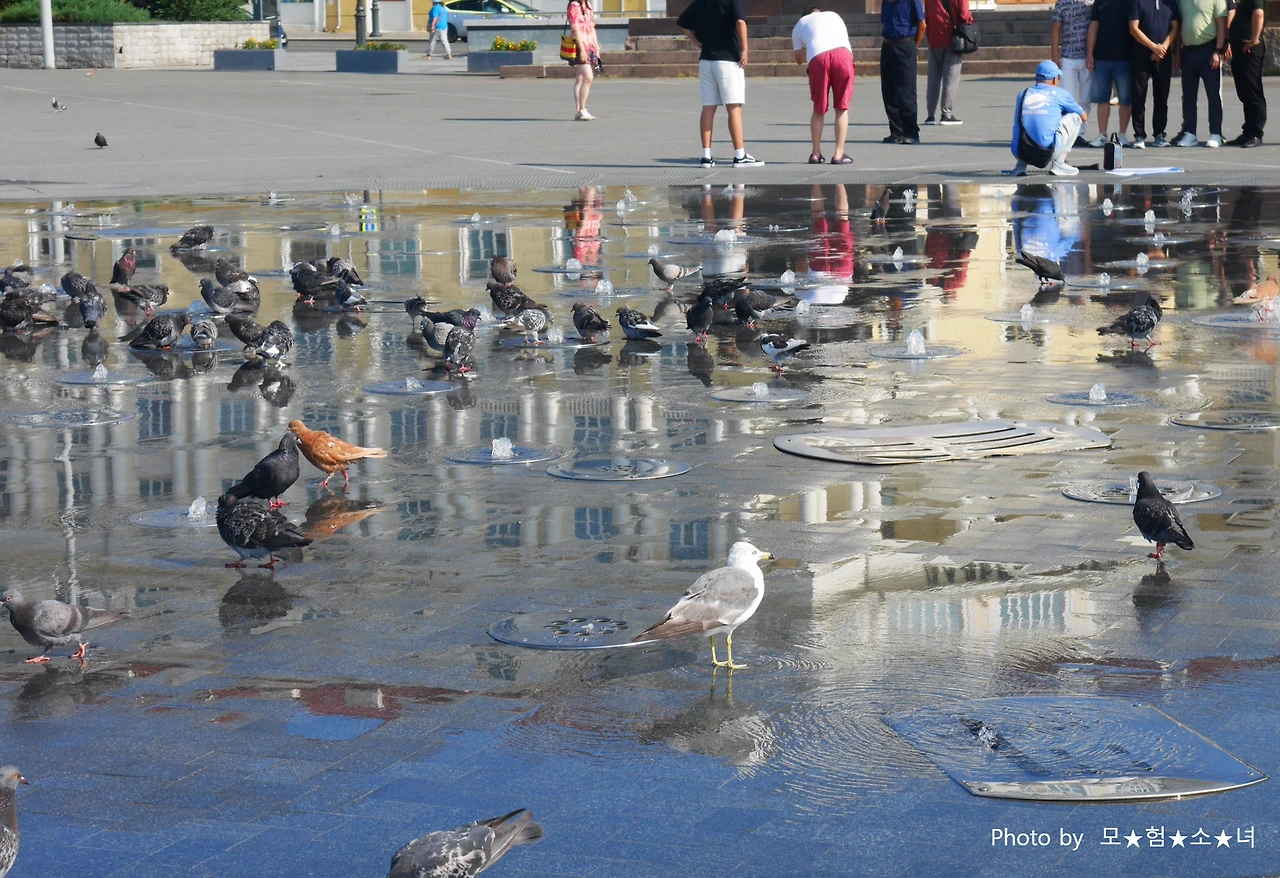 중앙 광장에 생긴 매립형 분수는 실제로 보니 굉장히 컸다. 혁명 동상 때문에 다소 묵직한 느낌이 맴돌던 광장이 분수 덕분에 활기가 넘치고 많은 사람이 모이는 장소가 되었다. 그리고 광장 한쪽 위엄있게 자리잡은 구세주 변모 대성당은 이제 명실상부 블라디보스토크를 대표하는 성당이다. 작년부터 예배를 드리기 시작했는데, 완공까지 오랜 시간이 걸린 만큼 시민들의 염원이 담긴 장소이다. 주말이면 광장에 더 많은 관광객들이 몰리다 보니 성당에서 예배 시간 중에는 외국인의 출입을 엄격하게 제한하고 있었다.