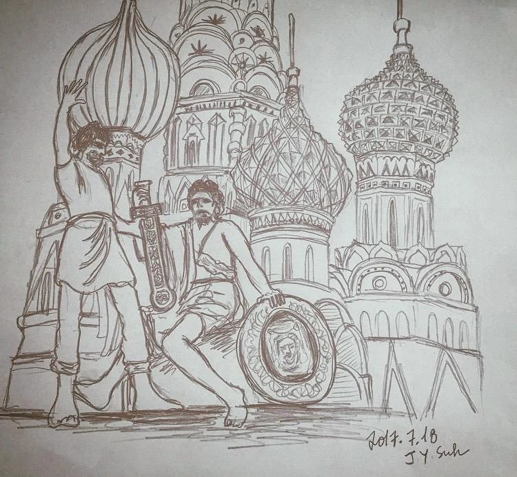 책에 있는 모스크바 명소 사진을 보고 무작정 따라그리기 시작했다.