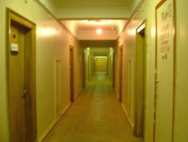 그 문을 열고 들어가면 넓은 복도와 기숙사 방문이 여럿 있다. 문마다 두 개의 작은 방과 화장실이 있다. 좁은 1인 2실... 시스템이었다.