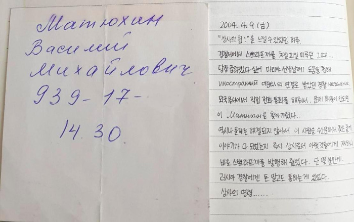 그 날의 기억. 종이에 적힌 경찰서 책임자의 이름.. 마튜힌 아저씨!