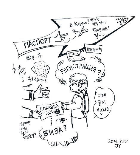 비자를 받기가 무섭게 최대한 빠른 날짜의 항공 티켓으로 러시아로 돌아왔다.