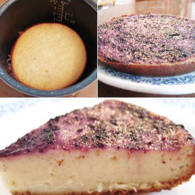 크림치즈와 보리수꿀, 달걀과 약간의 밀가루로 반죽을 만들고 밥솥 취사 버튼을 누르면,