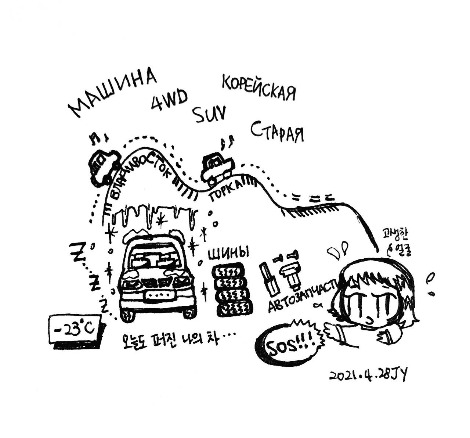 블라디보스토크 맨땅 위에서는 보험사 호출이나 카센터 출장 따위는 기대할 수 없었다.